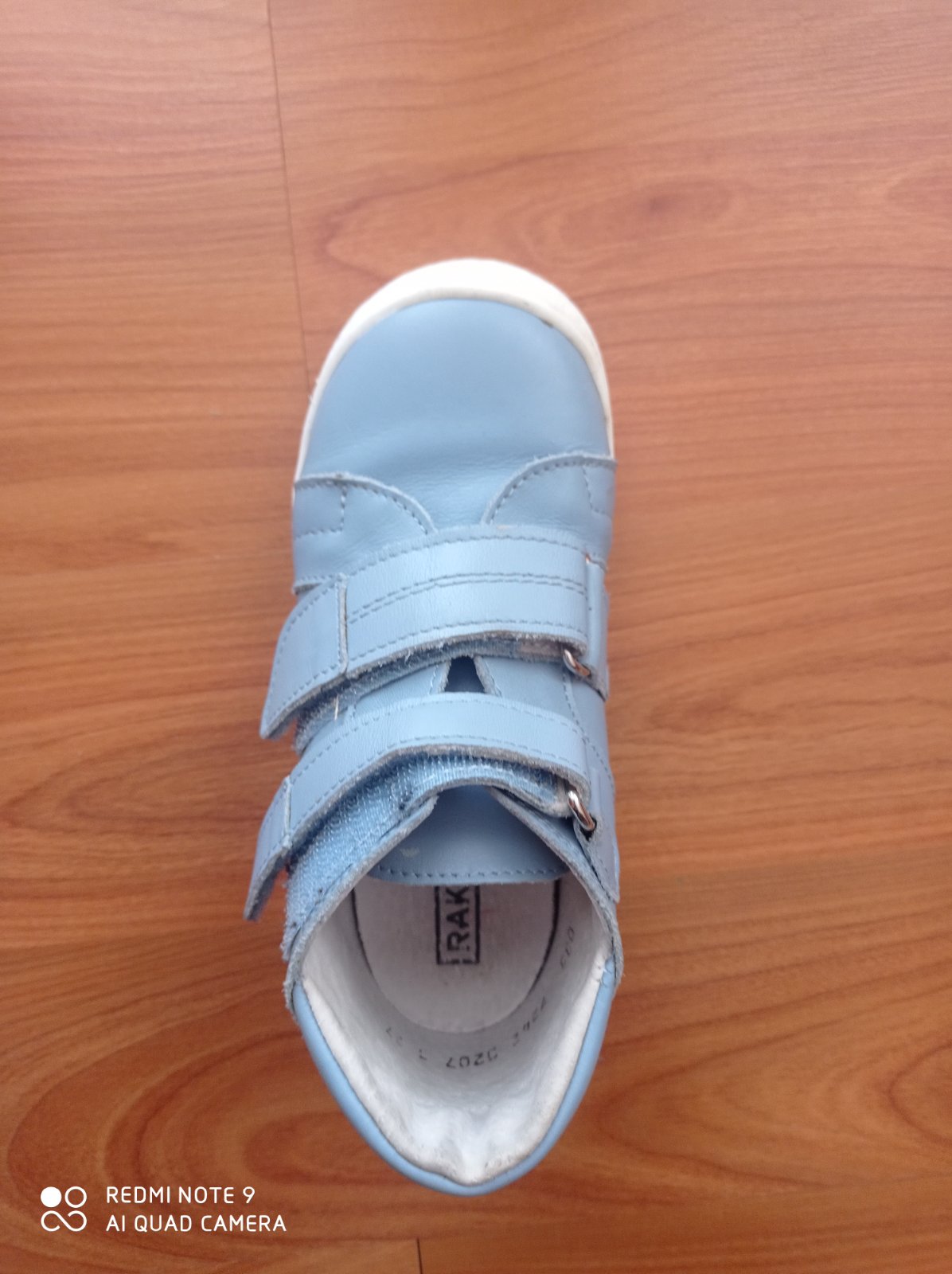 Krásne modré, párkrát použité, kožené prechodné topánky značky Rak. Pohodlné, širšie so zapínaním na suchý zips. Bez poškodení. (PC 40€)