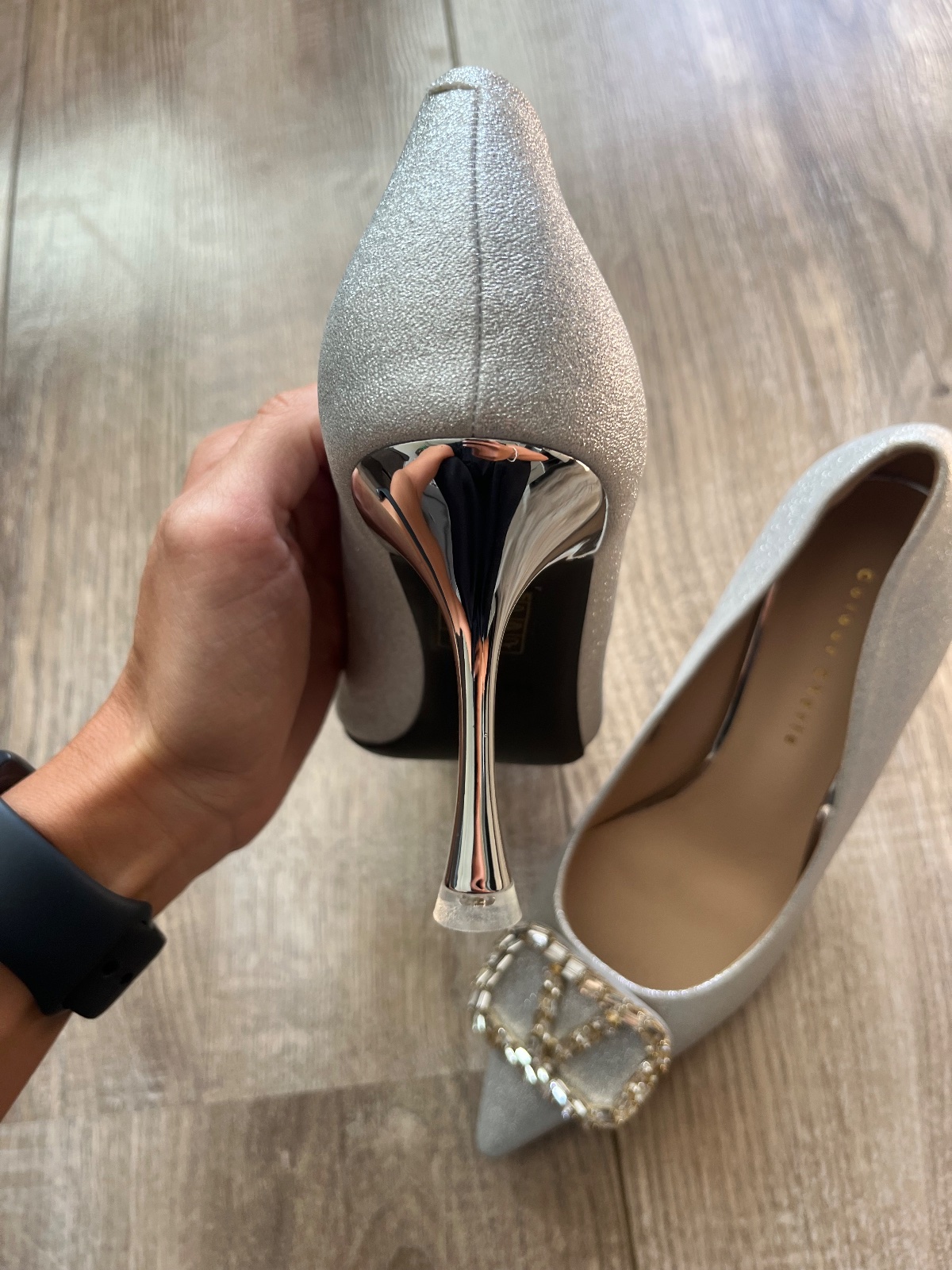 Pekné, elegantné lodičky s otvorenou špičkou. Farba strieborná. Výborný stav, mäkké a pohodlné. Veľ. 37.