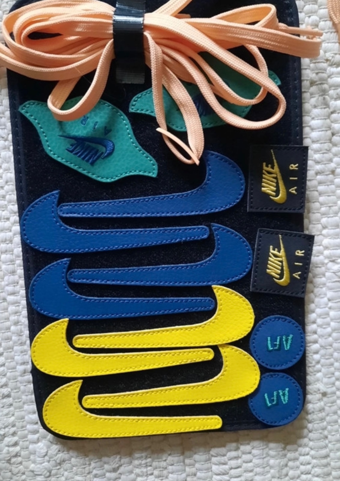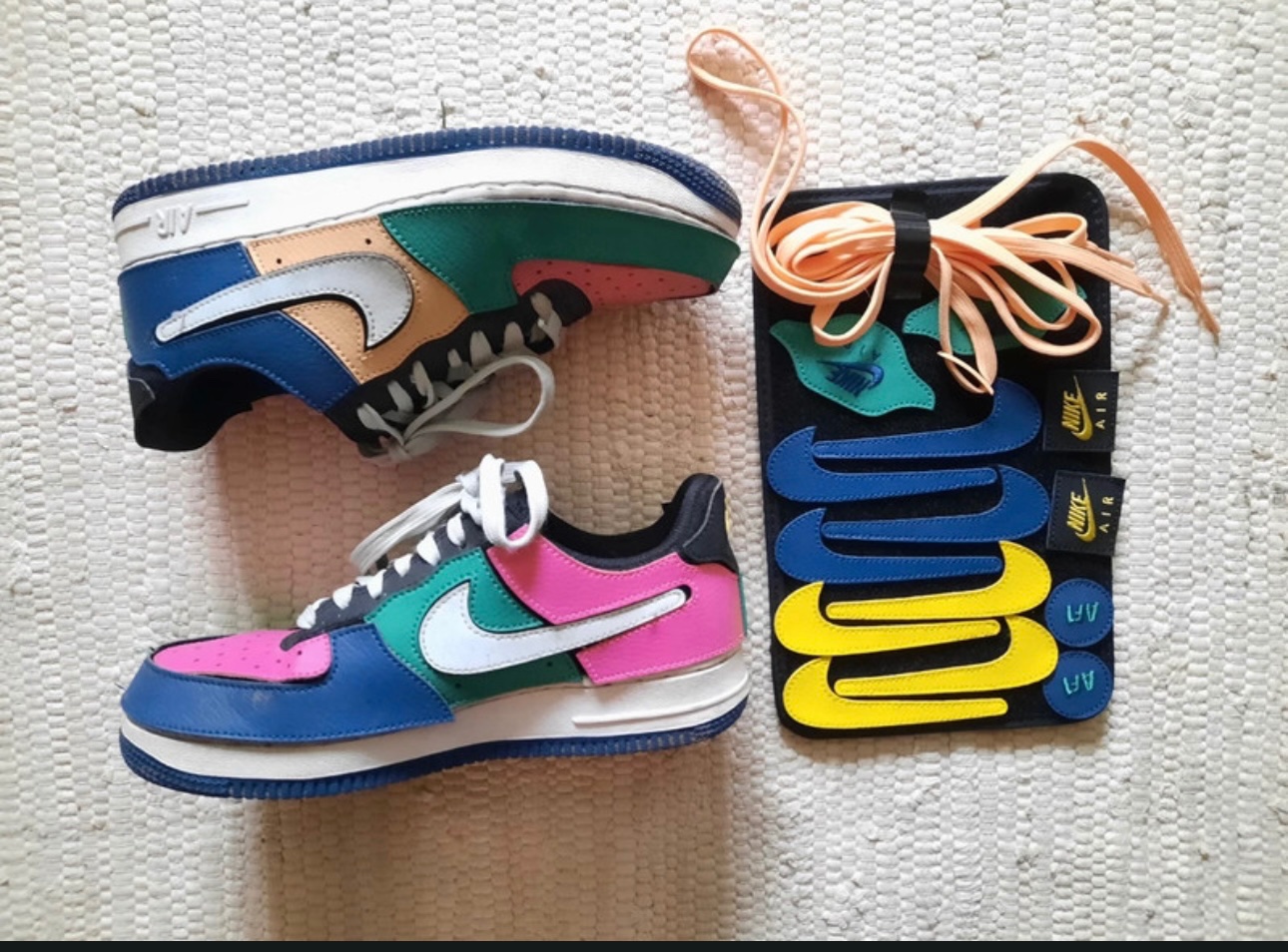 Krásne tenisky nike, nosené ale stále vo veľmi dobrom stave akurát dnu sú už kus zodraté odfotené to je na jednej fotke. Farbu topánok si viete meniť. Napríklad si necháte čisto čierne a pridáte iba fajky nike, alebo farebné je to iba na vás. Fungujú vlastne na princípe suchého zipsu odlepíte a prilepíte. Teraz sú na internete okolo 160e aj to nie sú dostupné všetky veľkosti. Opotrebenie topánok som zohľadnila v cene. Ale z vonka nemajú žiadnu veľkú viditeľnú chybu.