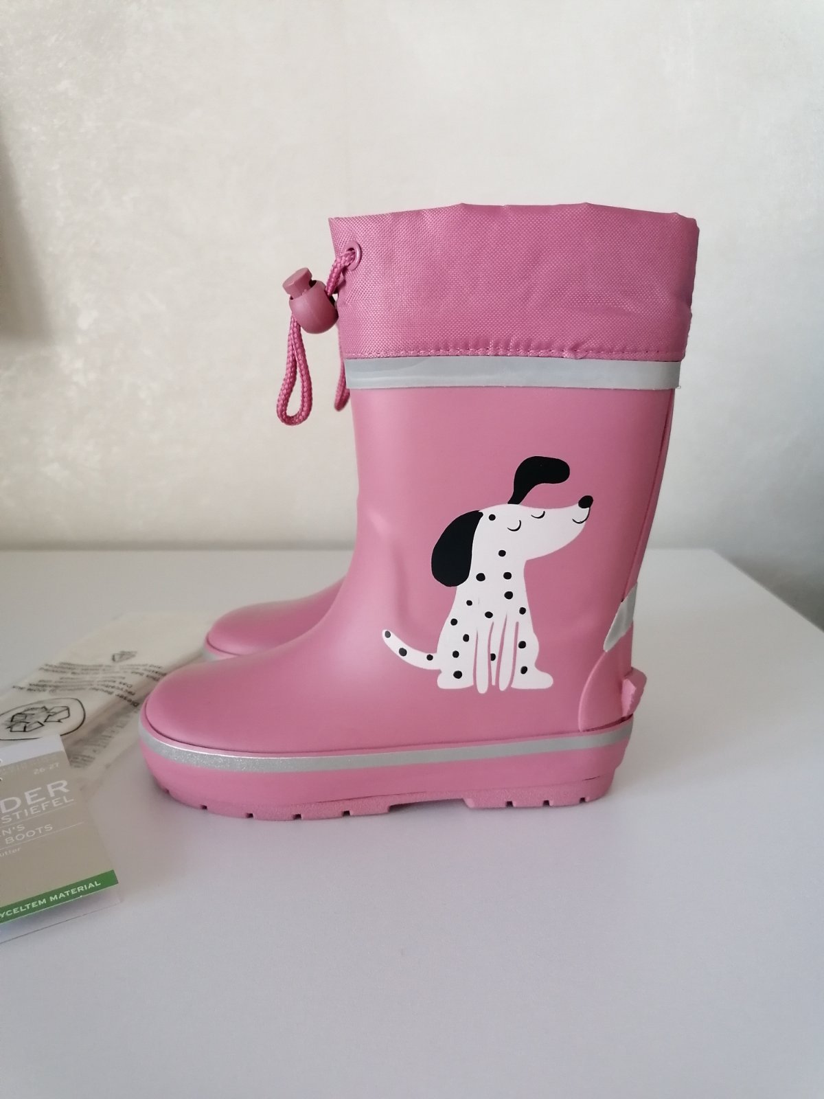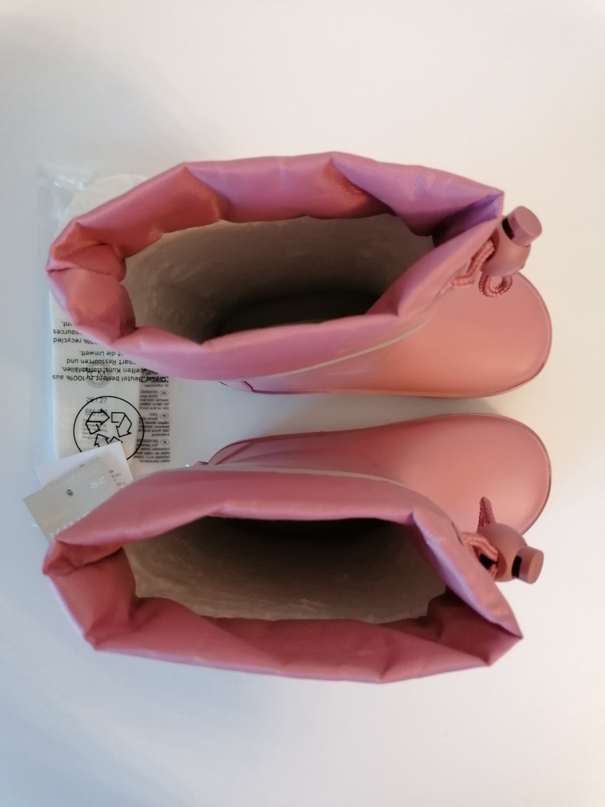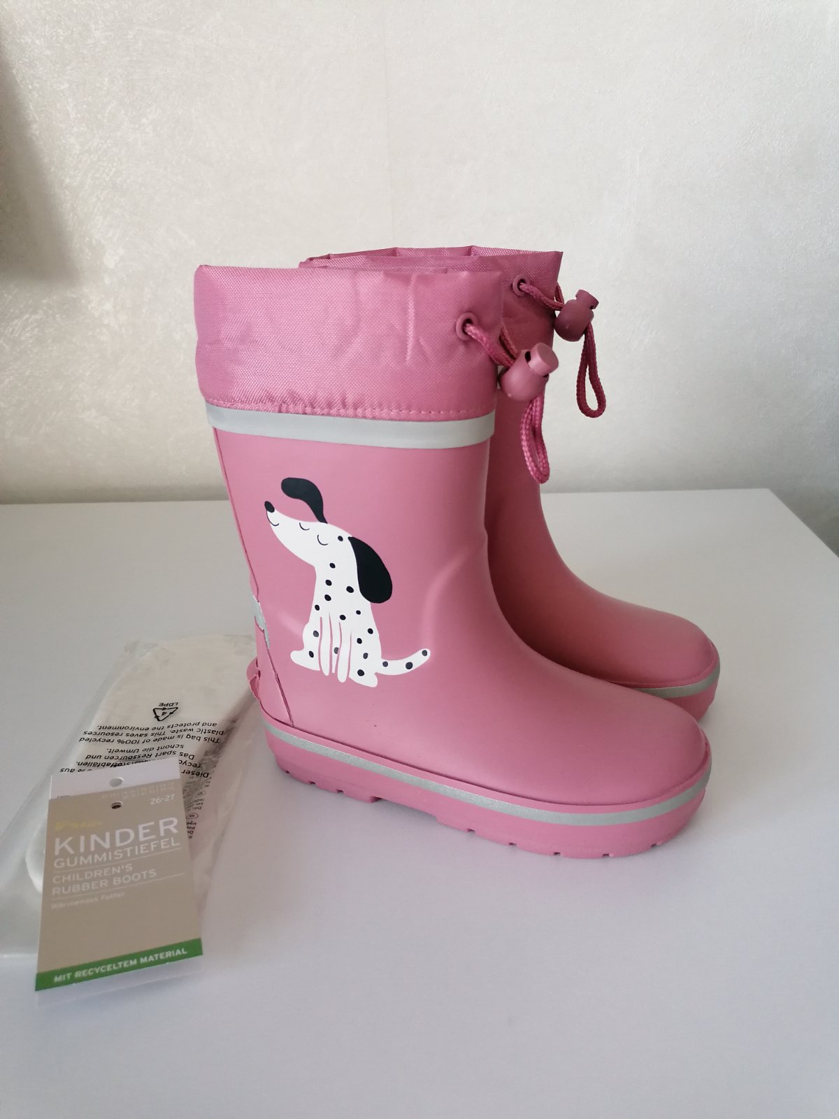 Krasne, nove, zateplene gumaky do dazda. S hrejivou podšívkou. Nepremokave. Lem so sťahovacou šnúrkou a s brzdičkami. S ozdobnými reflexnými prvkami. Protišmykova podrážka s profilom. Vyberateľná stielka na vyrovnanie veľkosti. Velkost 26/27. Nove, nenosene, top stav.