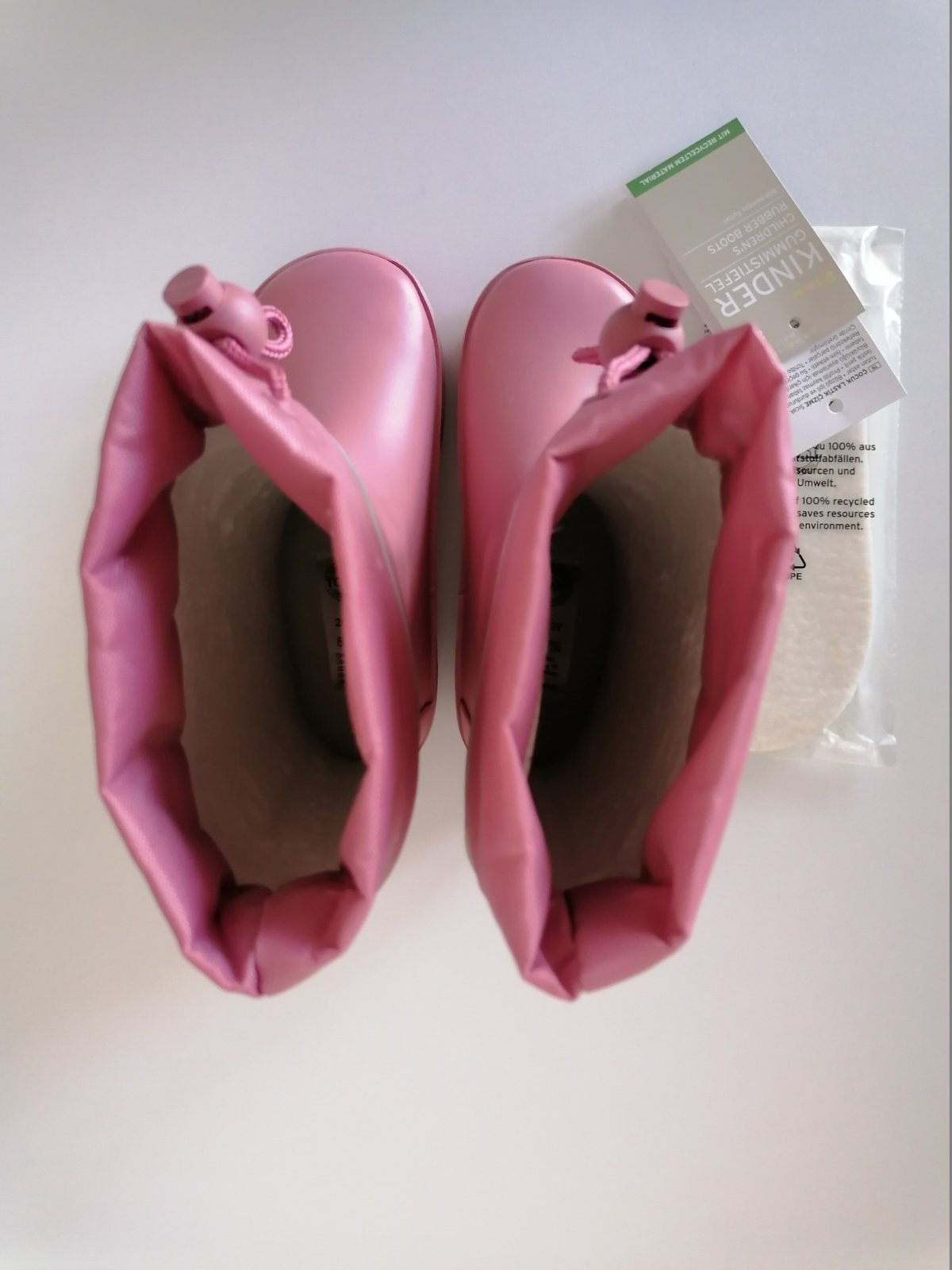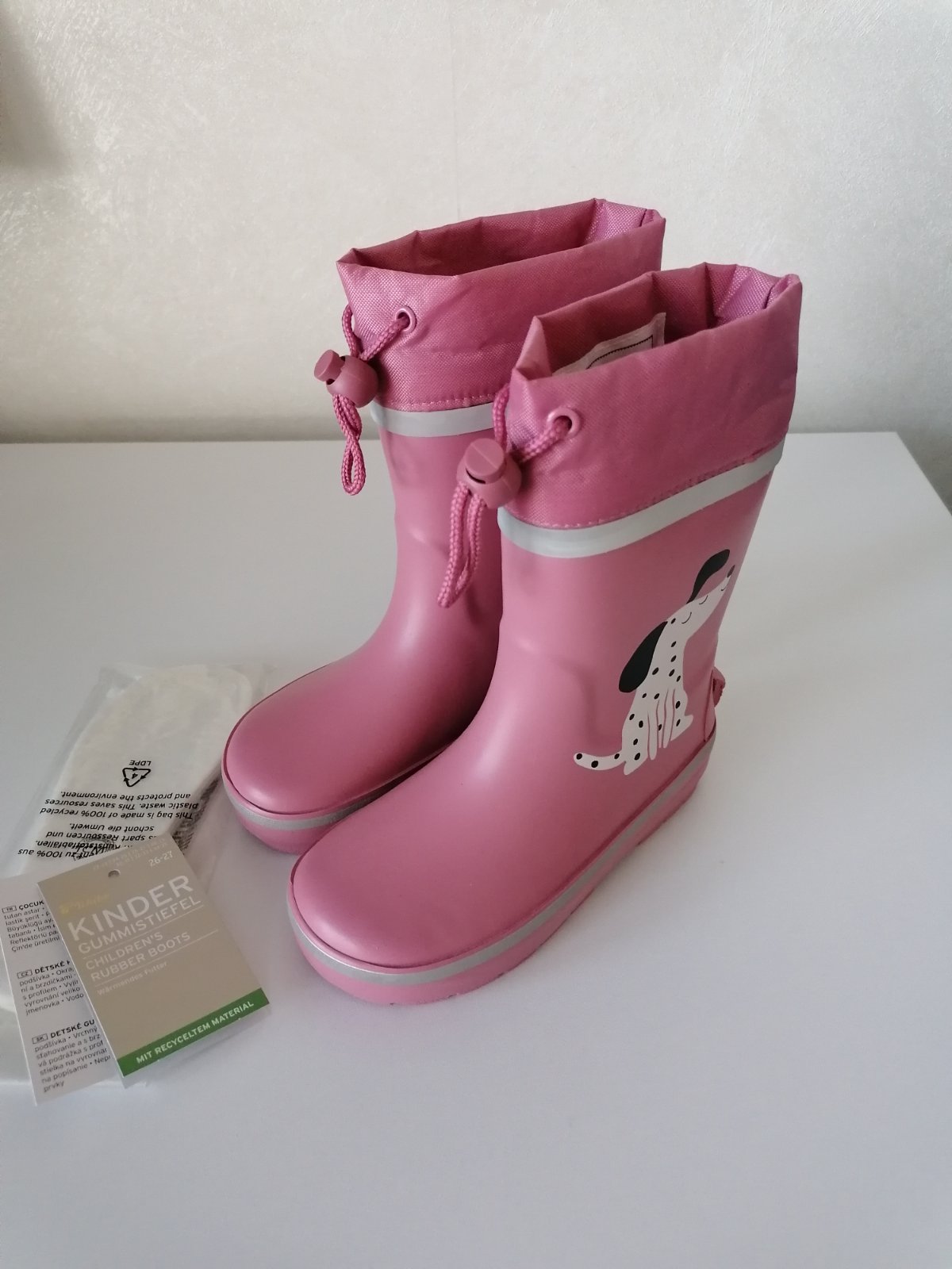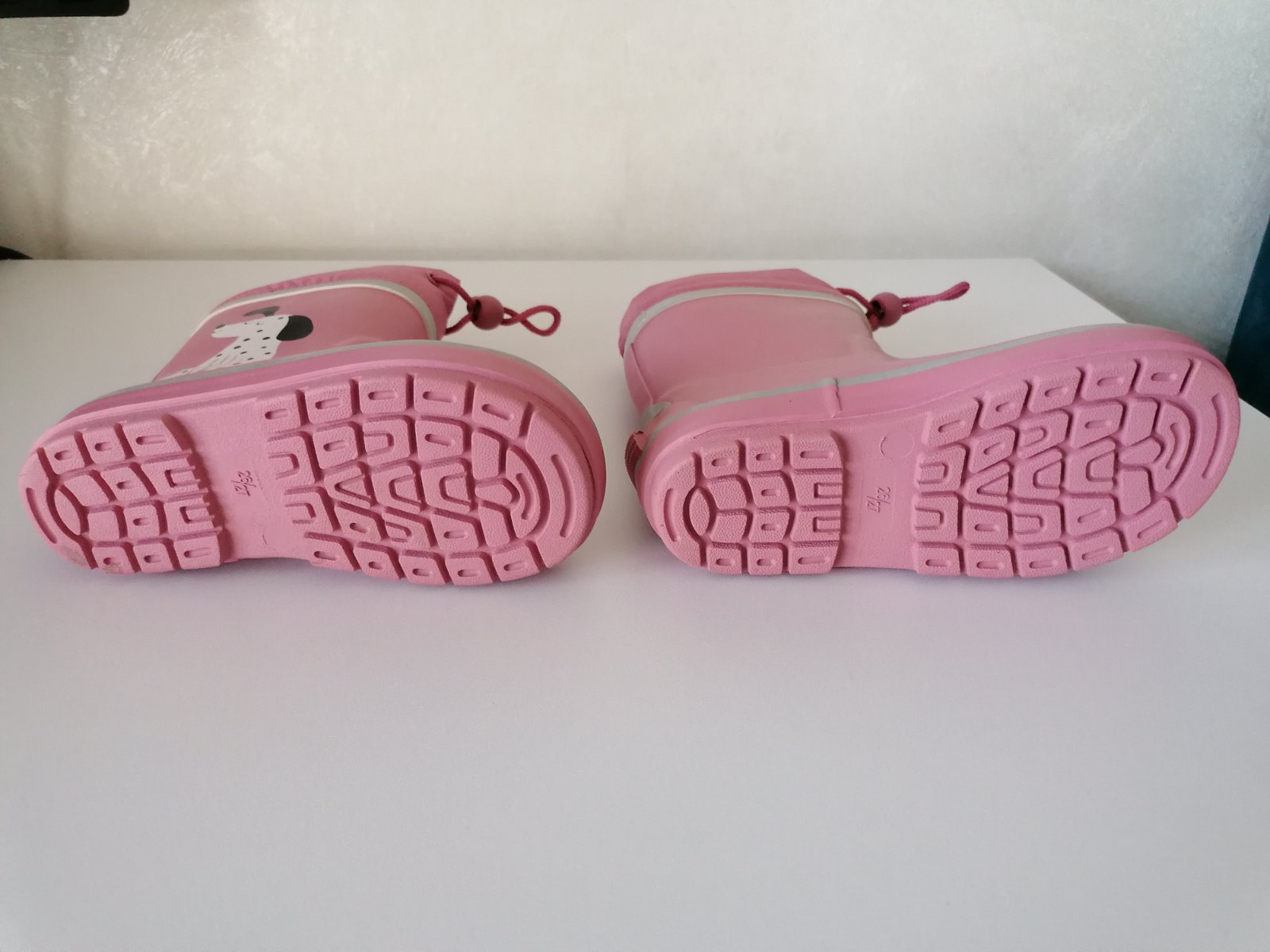 Krasne, nove, zateplene gumaky do dazda. S hrejivou podšívkou. Nepremokave. Lem so sťahovacou šnúrkou a s brzdičkami. S ozdobnými reflexnými prvkami. Protišmykova podrážka s profilom. Vyberateľná stielka na vyrovnanie veľkosti. Velkost 26/27. Nove, nenosene, top stav.