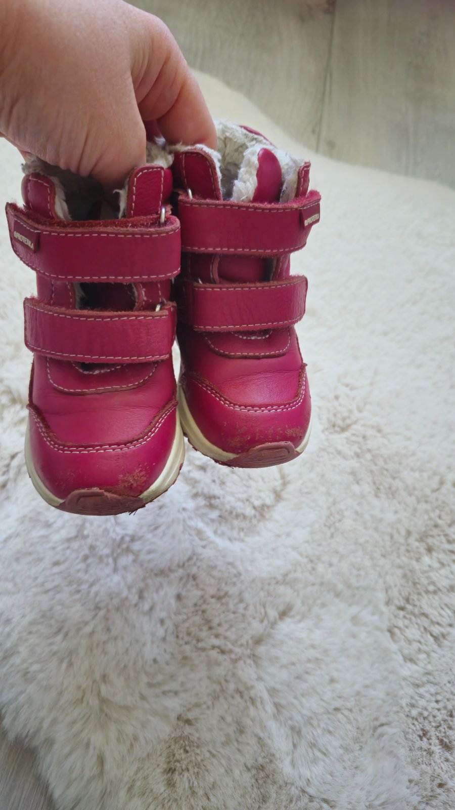 Nepremokavé, teple čižmičky. Vpredu troska šuchnute ,ale absolútne to nebráni používaniu. Na zimné behačky super.