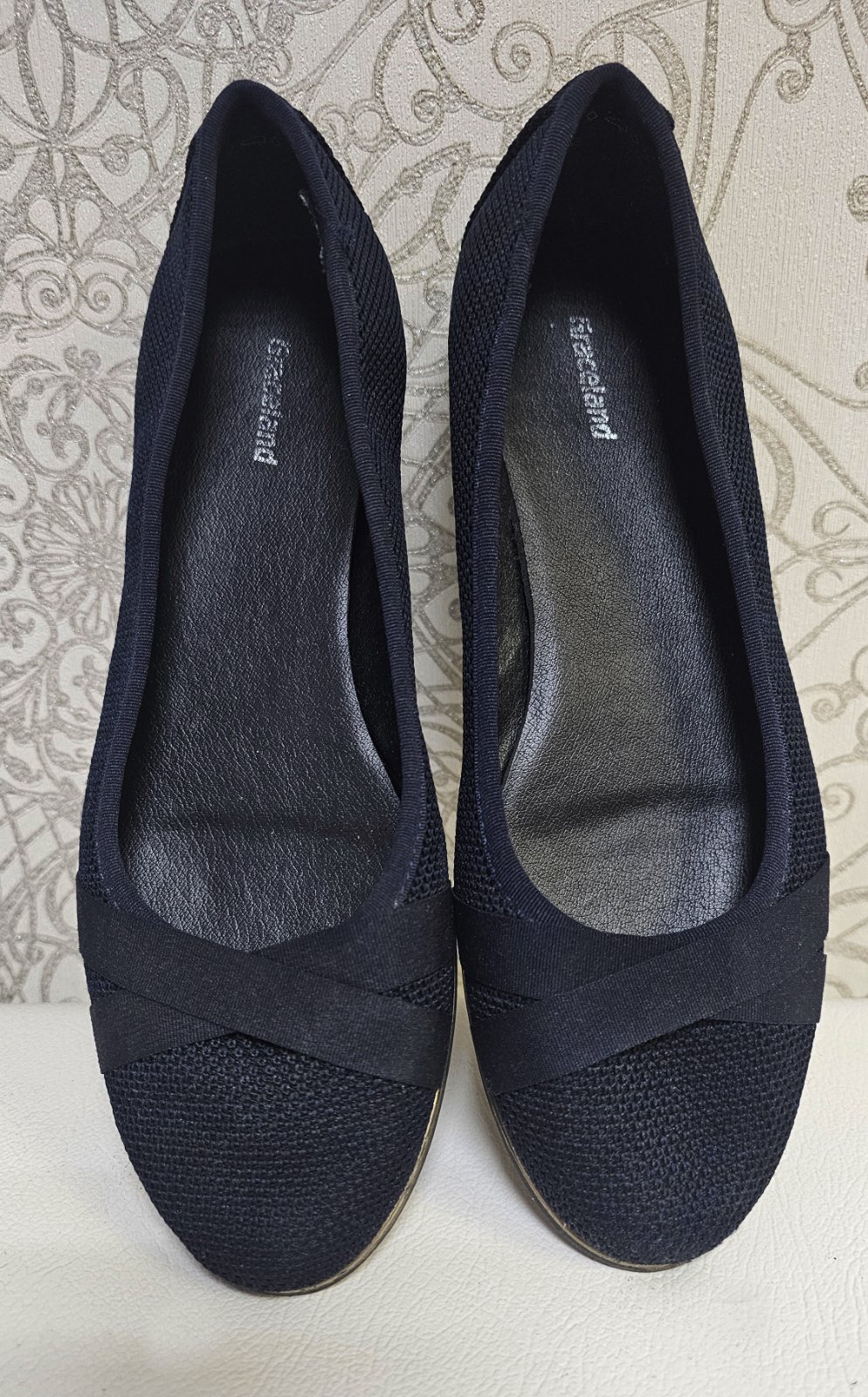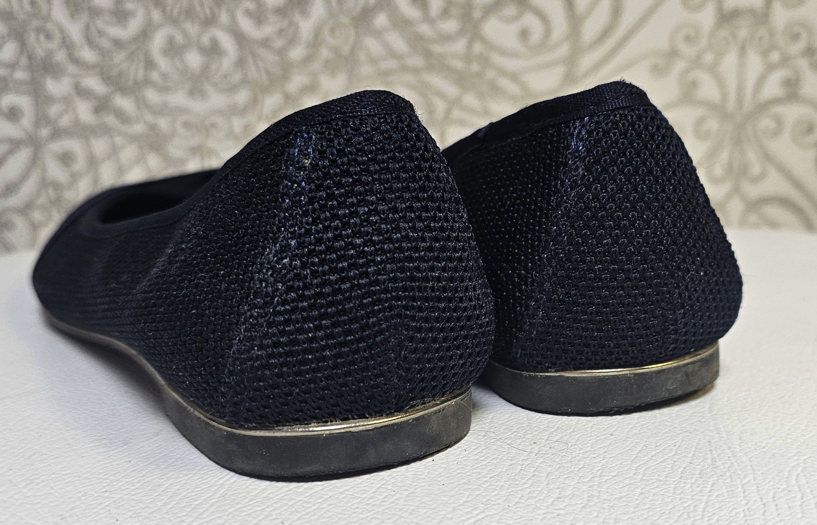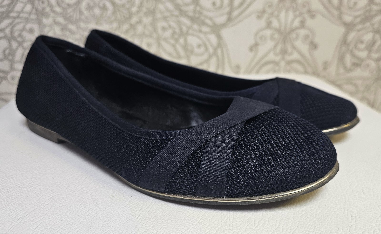 Výborný stav. Vnútorná dĺžka 24,5 cm. Podrážka gumová a nad ňou po celom obvode jemný leský do zlata ozdobný pásik.