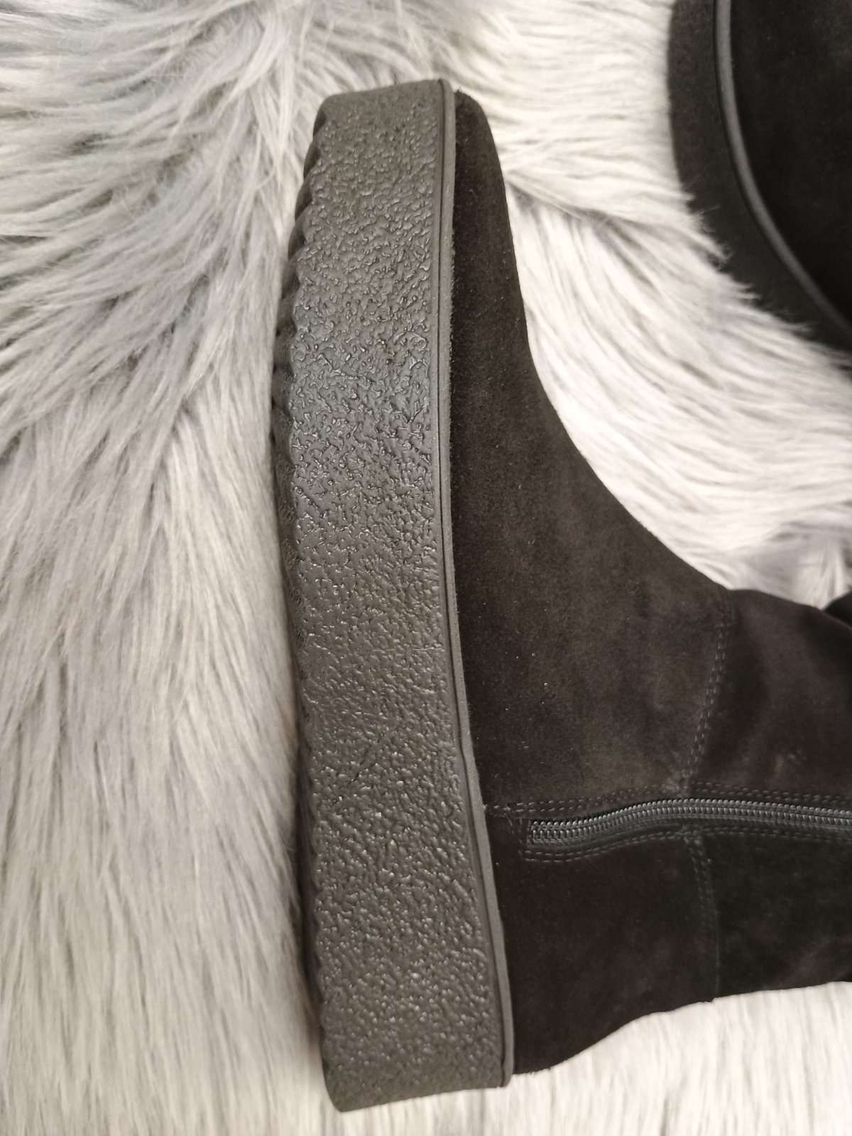 Členkové čižmy z kvalitného koženého materiálu je basik kúsok v dámskom šatníku, ktorý je stále vyhľadávaný všetkými ženami. Kvalitu, eleganciu a praktickosť ponúkajú tieto členkové čižmy značky Simen, ktoré sú vyrobené z prvotriednej kože. Jednoduchý dizajn a semišové prevedenie dodáva šmrnc a originalitu. Pre jednoduchšie obúvanie je vo vnútornej strane zips, ktorý vám maximálne uľahčí a zrýchli obúvanie. Masívna rovná podrážka je trendová a tlmí každý jeden krok. Ideálny dámsky model na studené zimné dni.