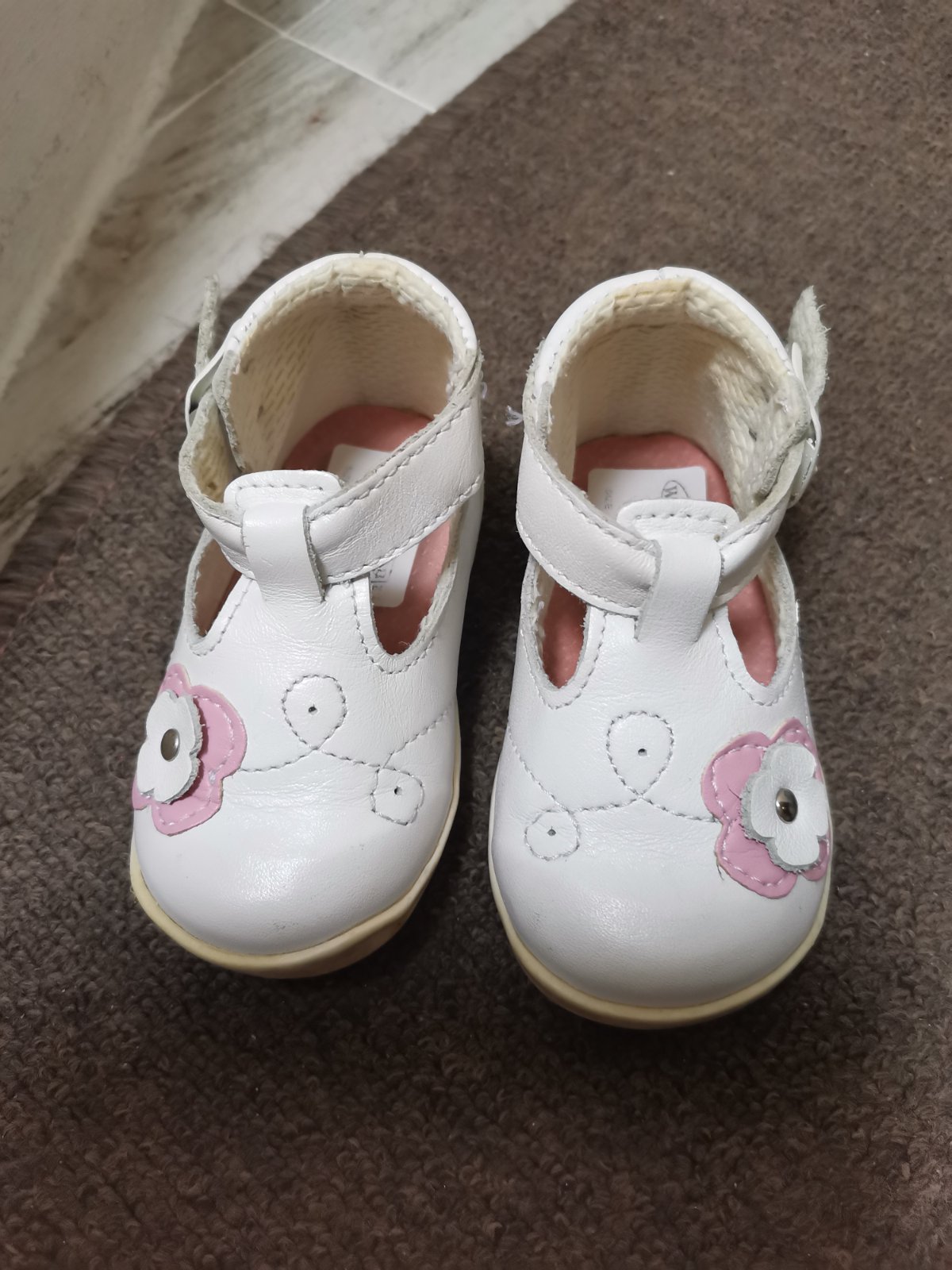 Predám topánočky na prvé kroky, ako na foto vidno sú spredu trochu osuchane ale inak sú v poriadku. Cena je 5 eur plus poštovné.