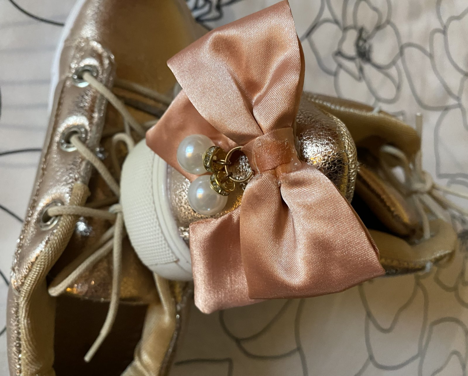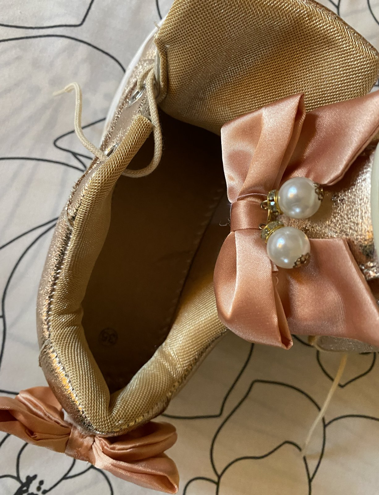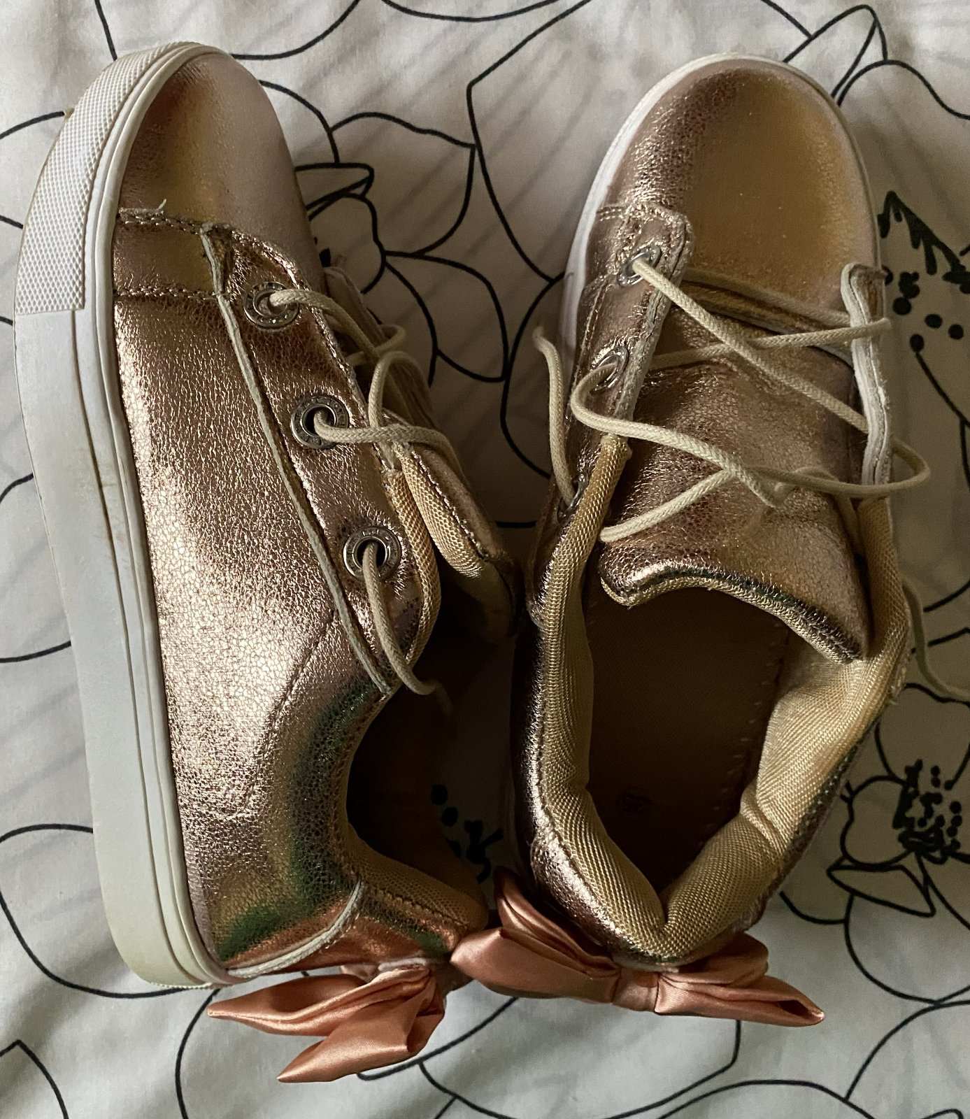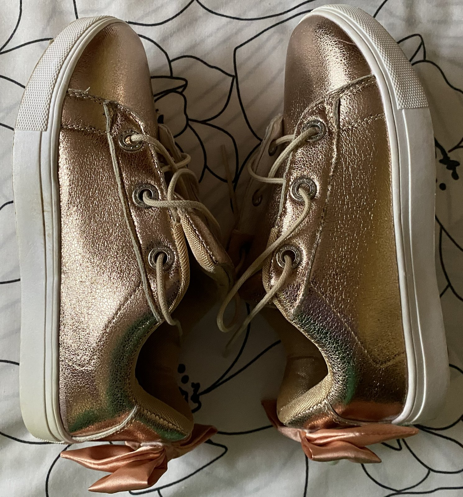 Zlaté topánky - tenisky v. 35, málo nosené na striedačku s inými. Vnútorná dĺžka - stielka cez stred: 21.5cm.