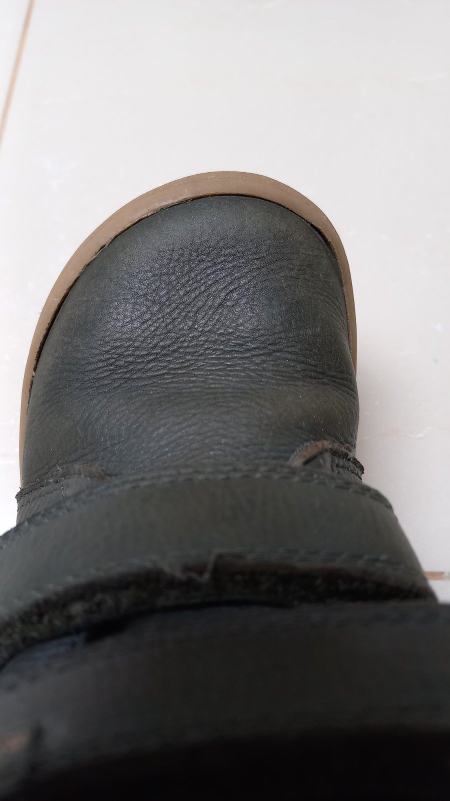 Predám zimné barefoot po jednom dieťati z minulej zimy. Na niektorých miestach ten materiál trochu zmenil farbu a na špičkách trochu povolila podrážka.