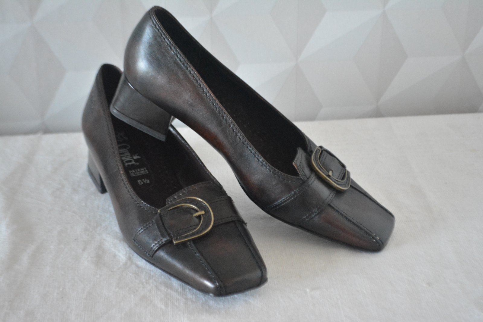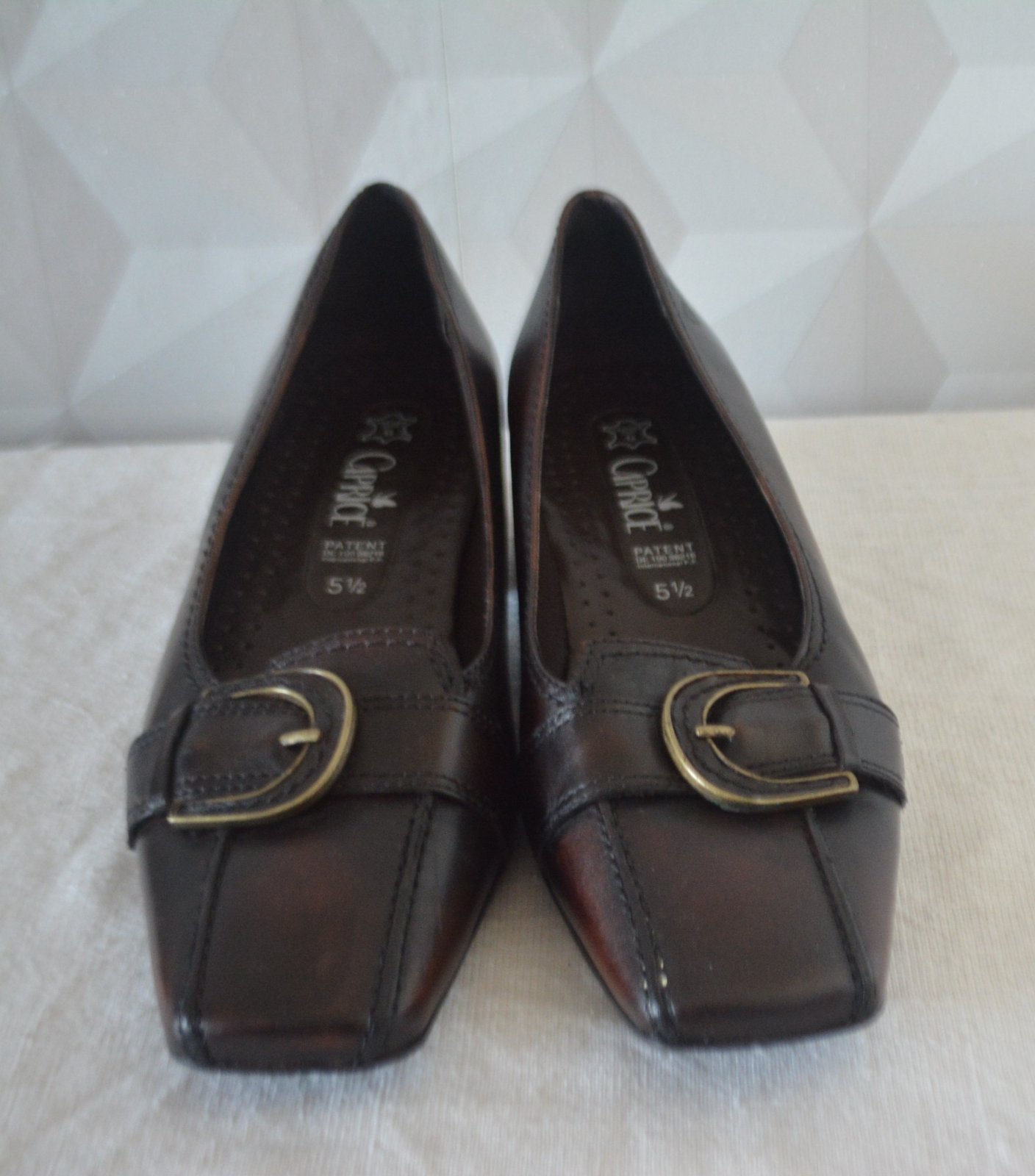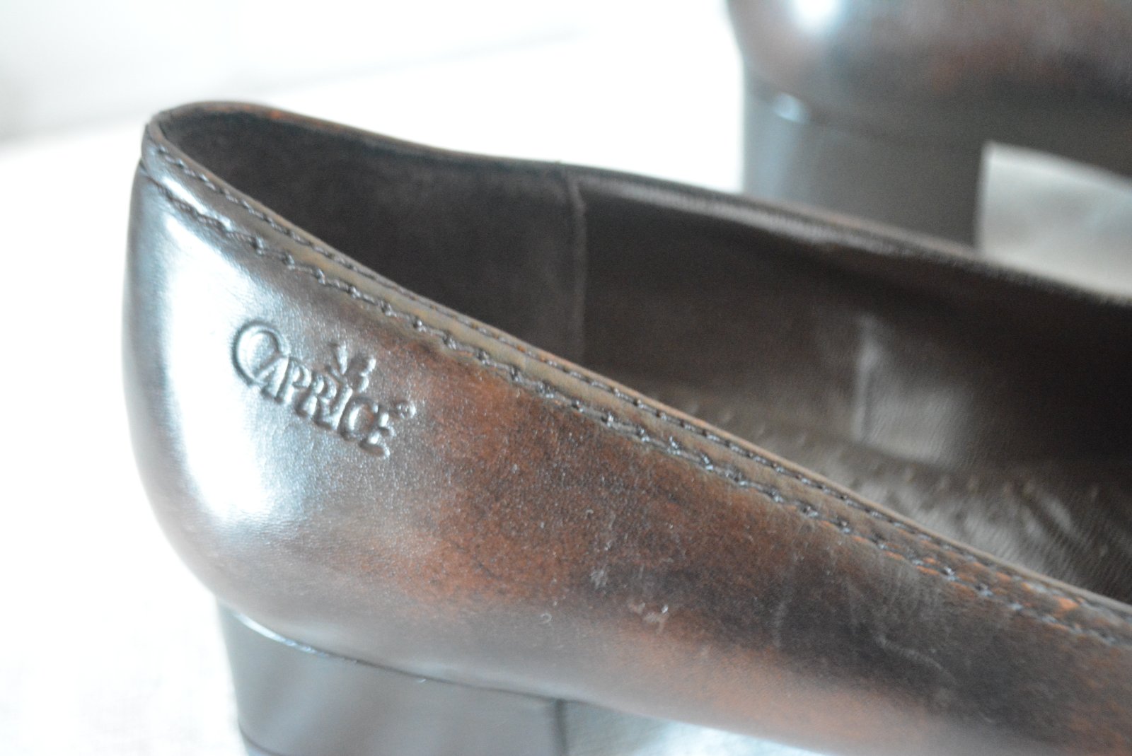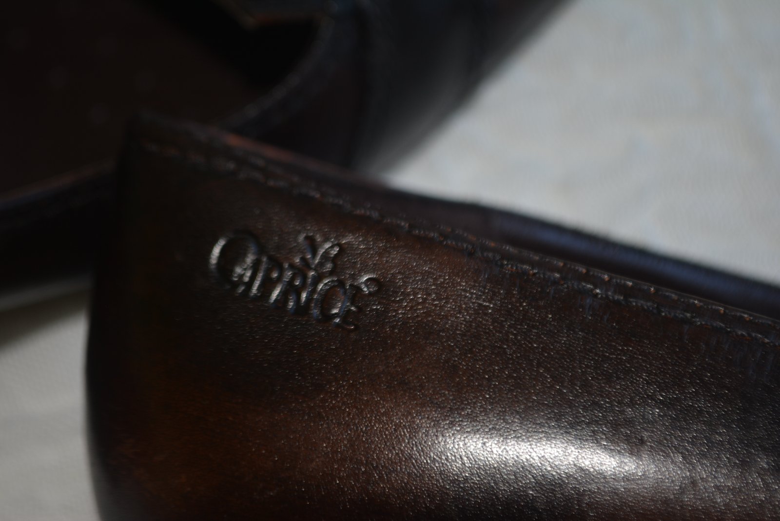 Čokoládovo hnedé, kožené poltopánky zn. Caprice, veľkosť 5 a 1/2, vnútorná dĺžka 24,5cm, opätok je stabilný, 4cm vysoký.