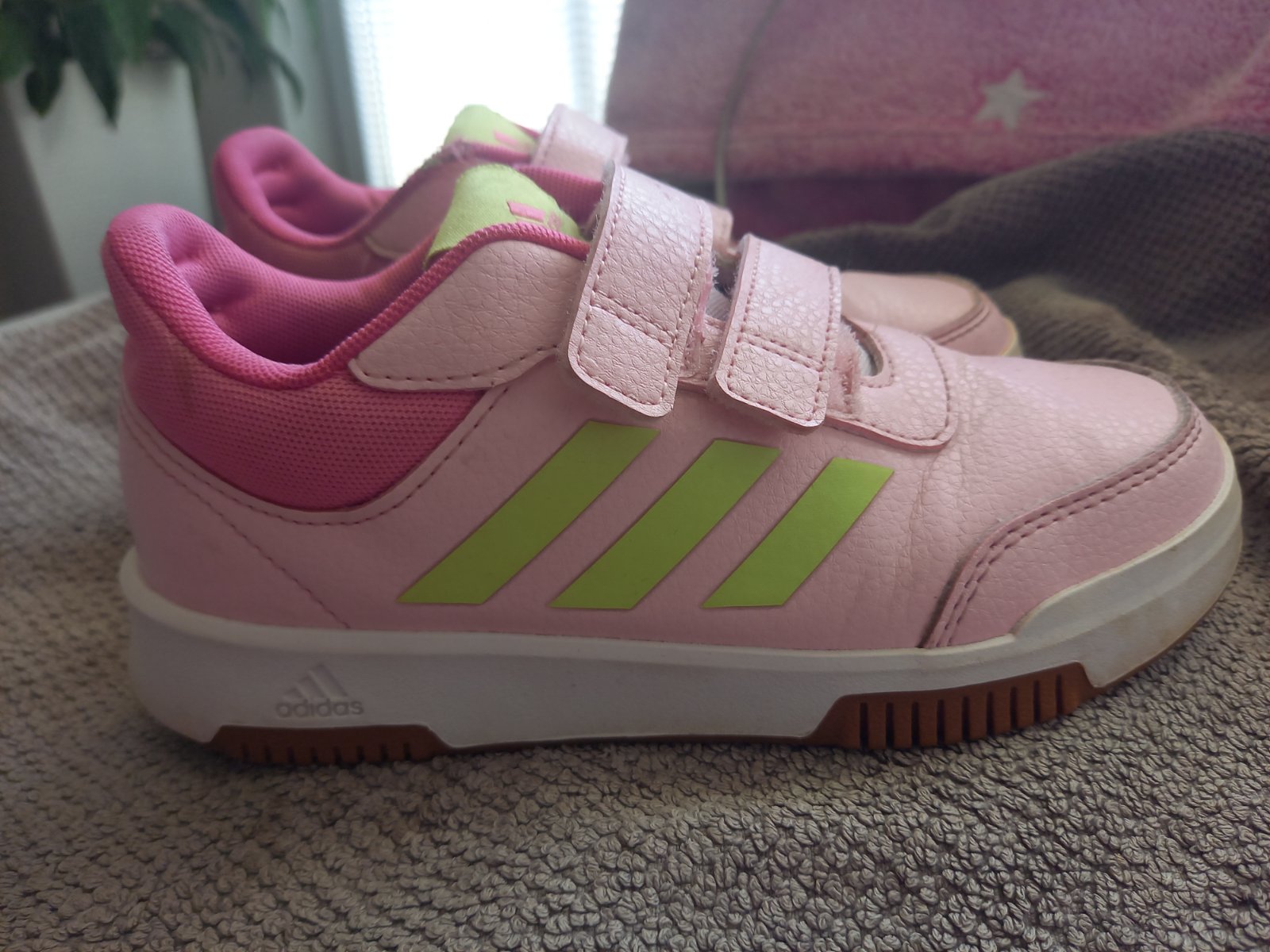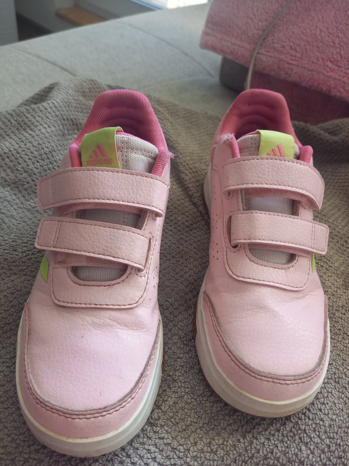 Dievčenské tenisky, značky Adidas, číslo 33. Kupované nové, nosené len dcérkou, v dobrom stave, len na vnútorných bokoch trochu zošuchane (foto).