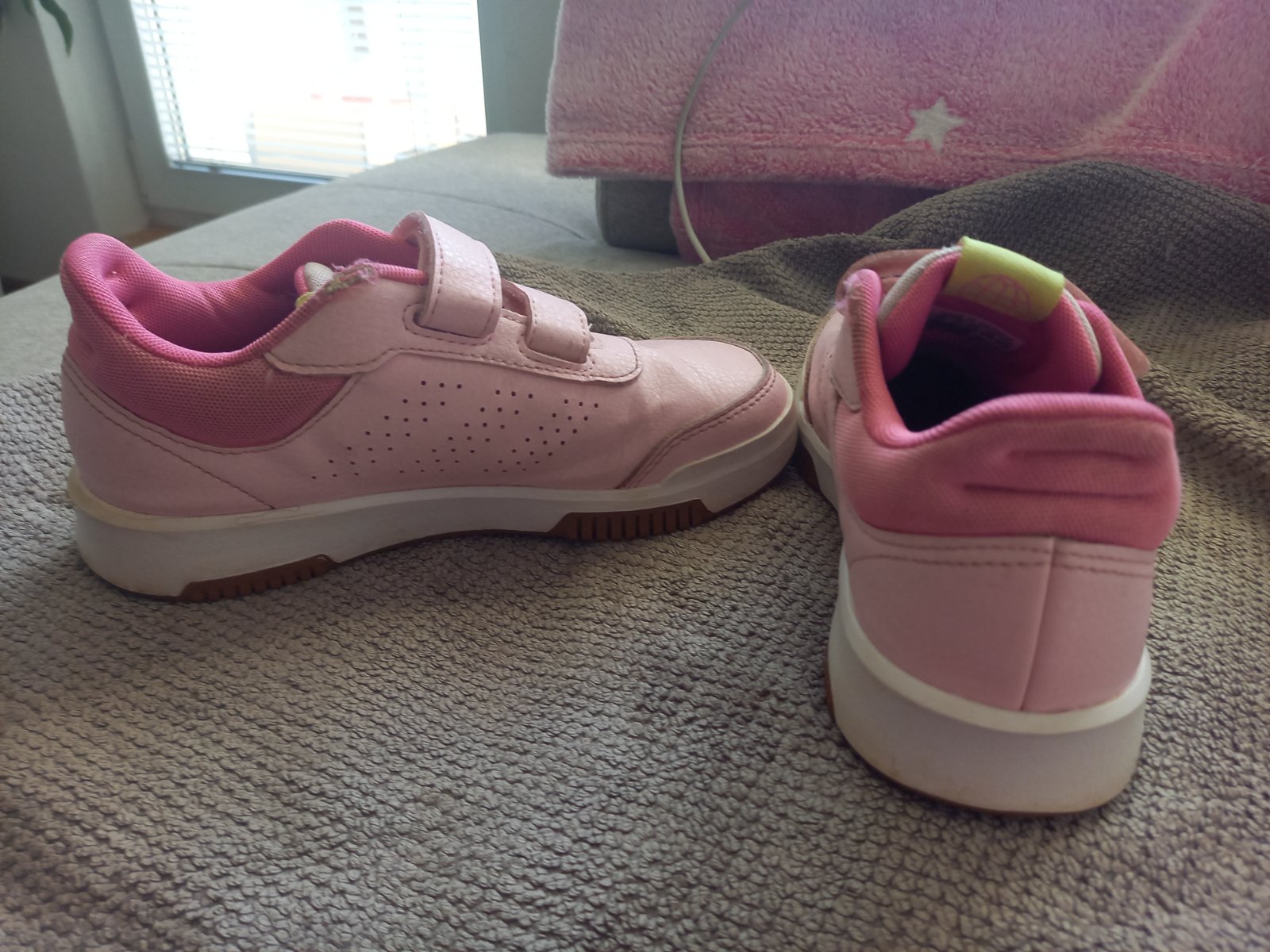 Predám zachovalé tenisky, nosené len mojou dcérou. Mali sme troje rovnaké vo veľkosti 33, dvoje ružové a jedny béžové. Tenisky niesu okoptane len hore pri členku z vnútornej časti trochu osuchana l...