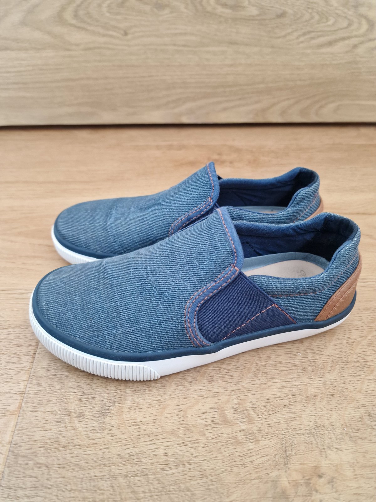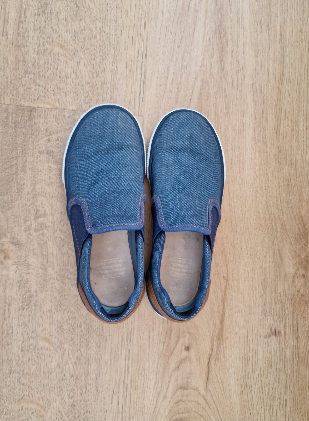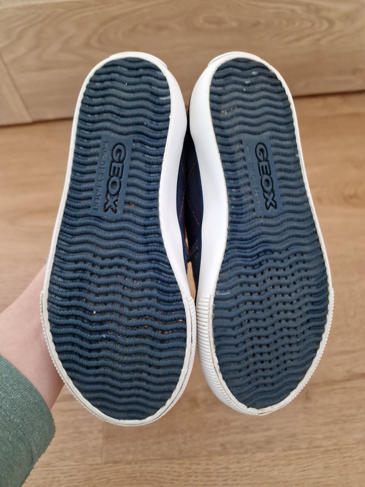Modre kozene tenisky zn. geox v peknom nosenom stave. Jedna je voredu trosku suchnuta, vide detail foto. Velkost EUR30