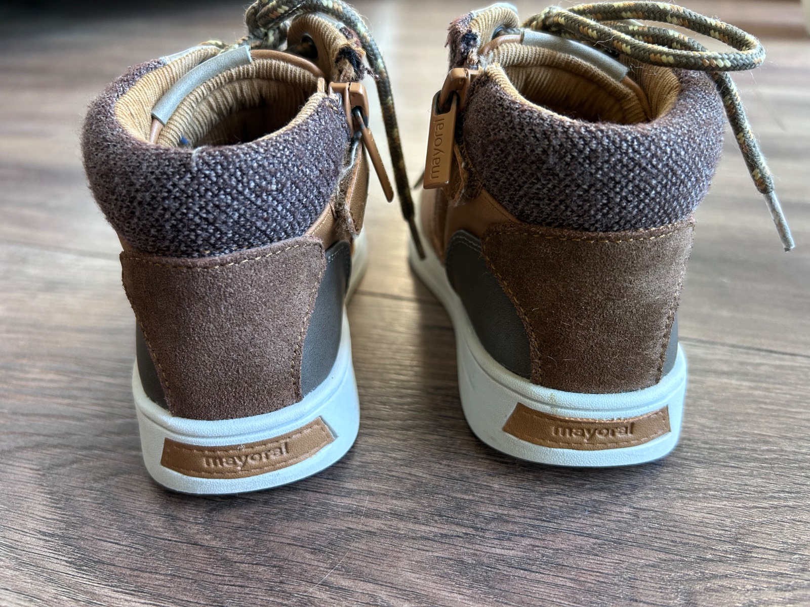 Ponúkam na predaj prechodné topánky pre chlapca zn. Mayoral. Topánky sú v bezchybnom stave. Zapínanie je z boku na zips, plus zaväzovanie na šnúrky.