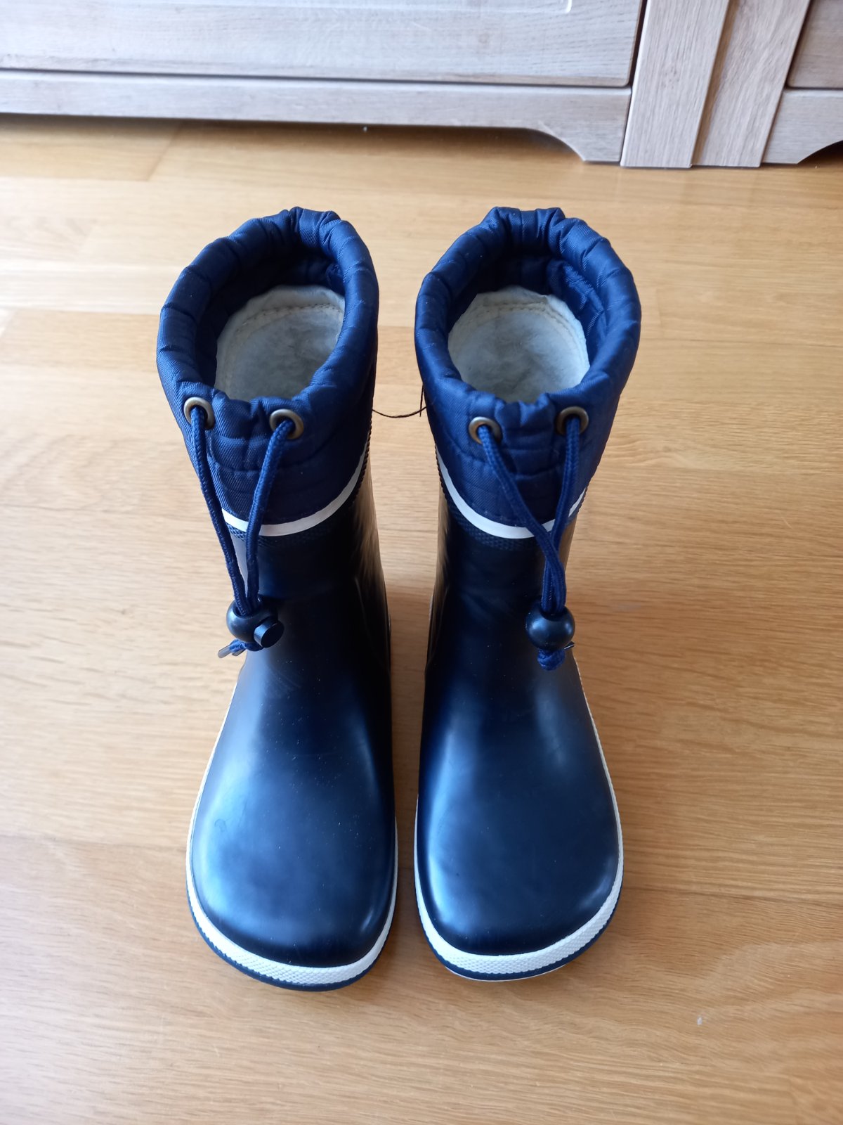 Sú v dobrom zachovalom stave, na päte sú trochu ošúchané od sánkovania. Používali sme ich na jar, keď bolo chladnejšie a potom od jesene do zimy. Gumáky sú zateplené, takže sme ich používali aj ako snehule. Sú veľmi pohodlné, široké a ľahučké. Boli sme s nimi veľmi spokojní.