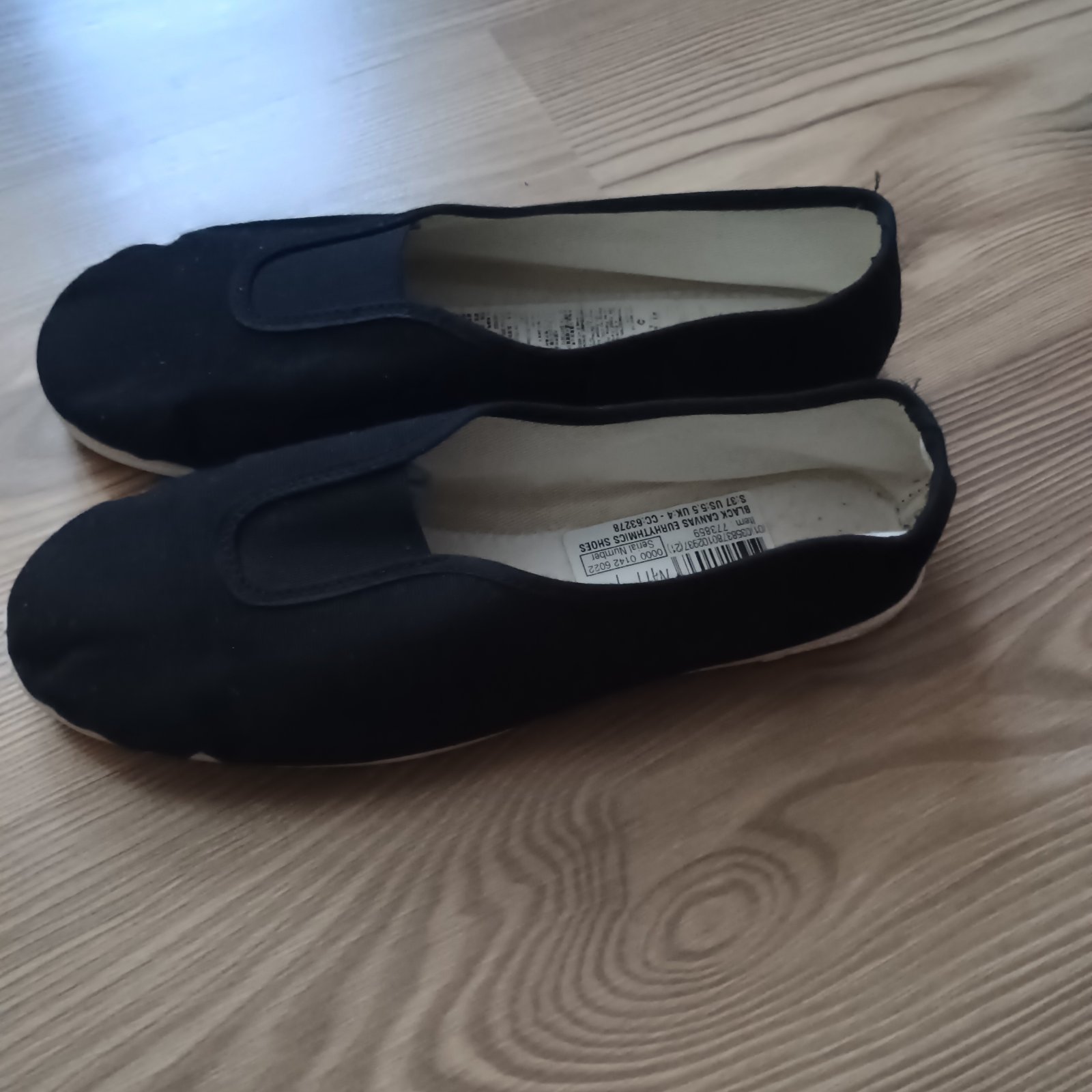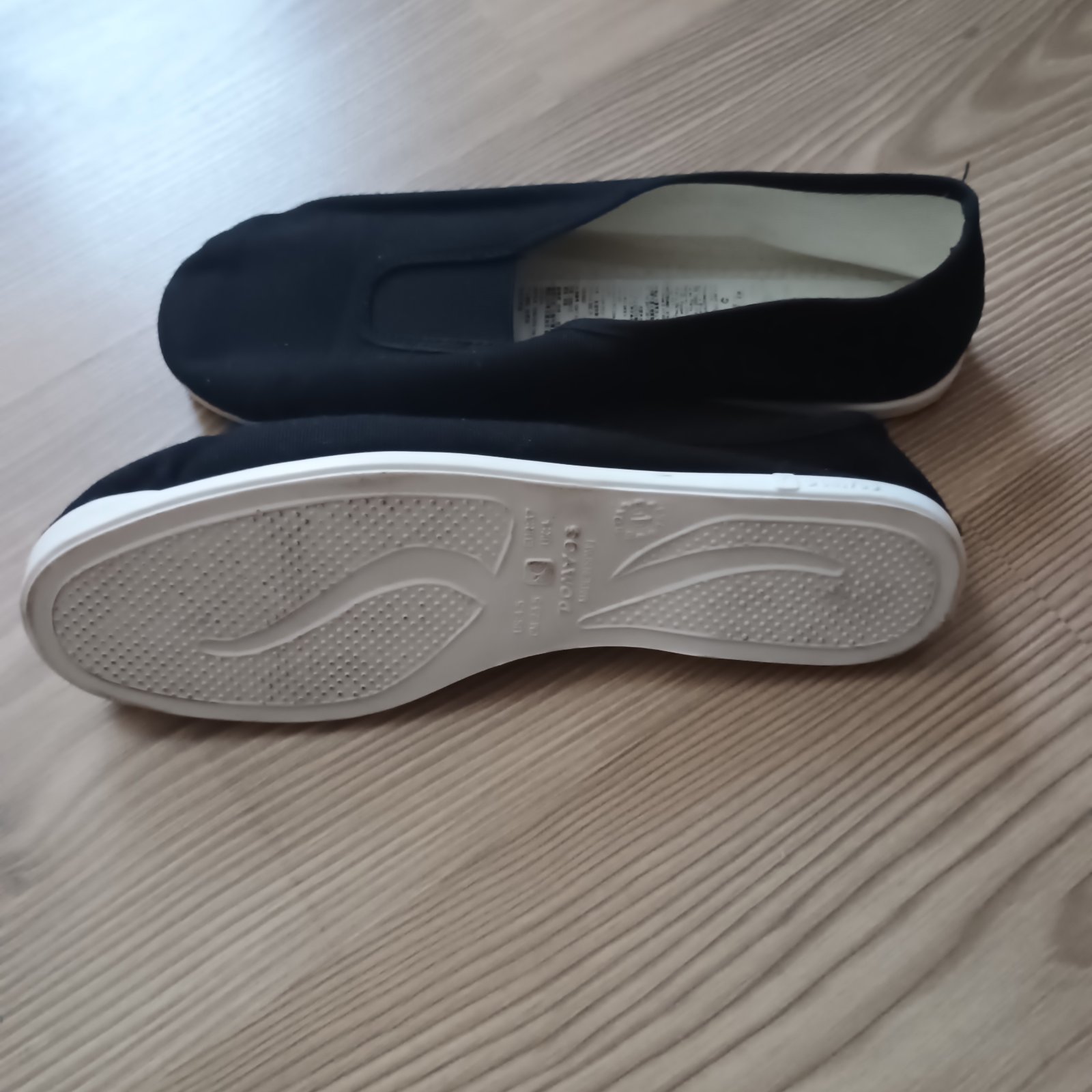 Malo nosene, veľmi dobrý stav. Meno napísané zvnútra. Su to látkové cvičky, ktoré sa jednoducho obúvajú, majú izolujúcu podrážku a sú vhodné na športové aktivity v interiéri aj exteriéri.