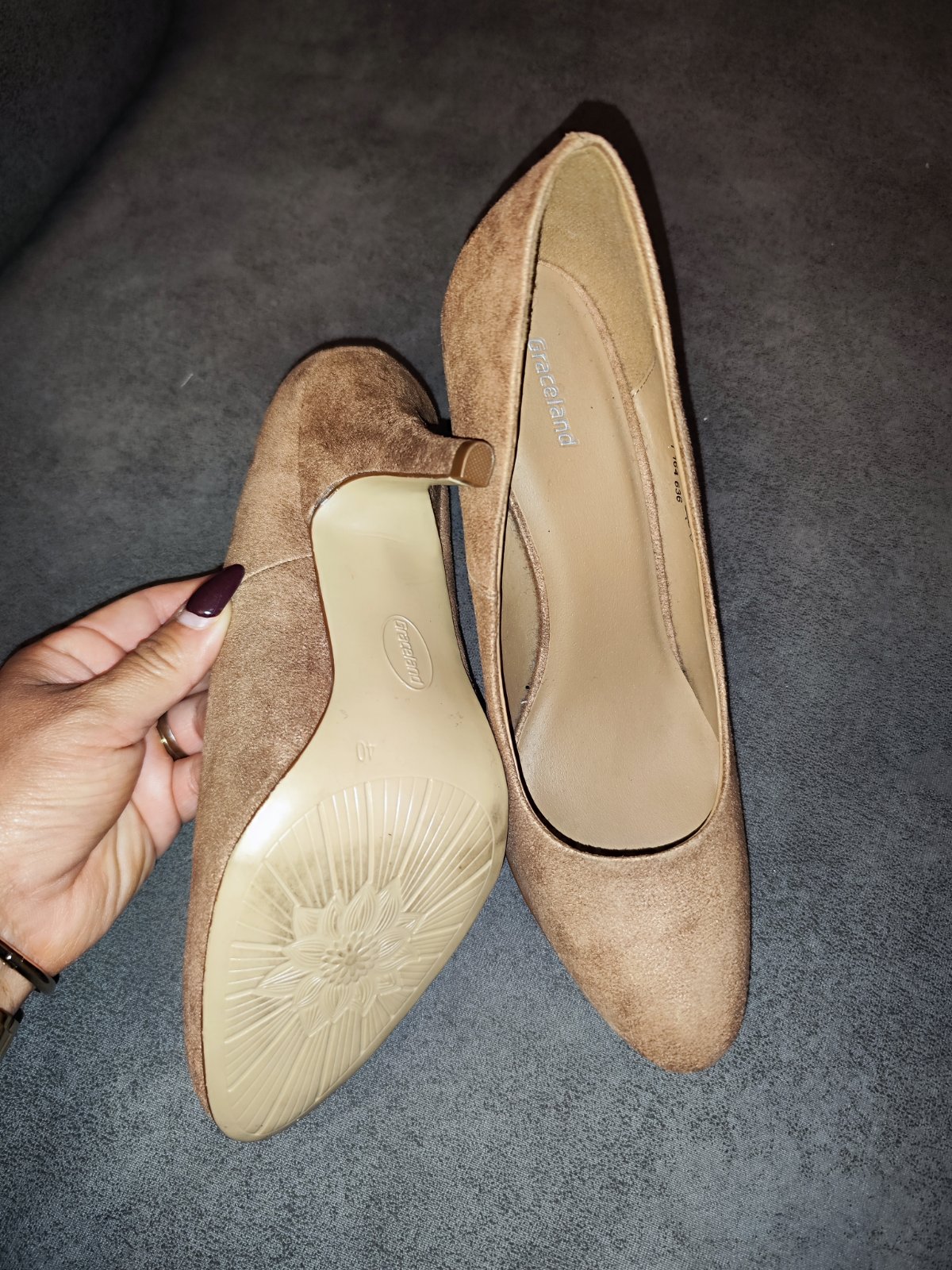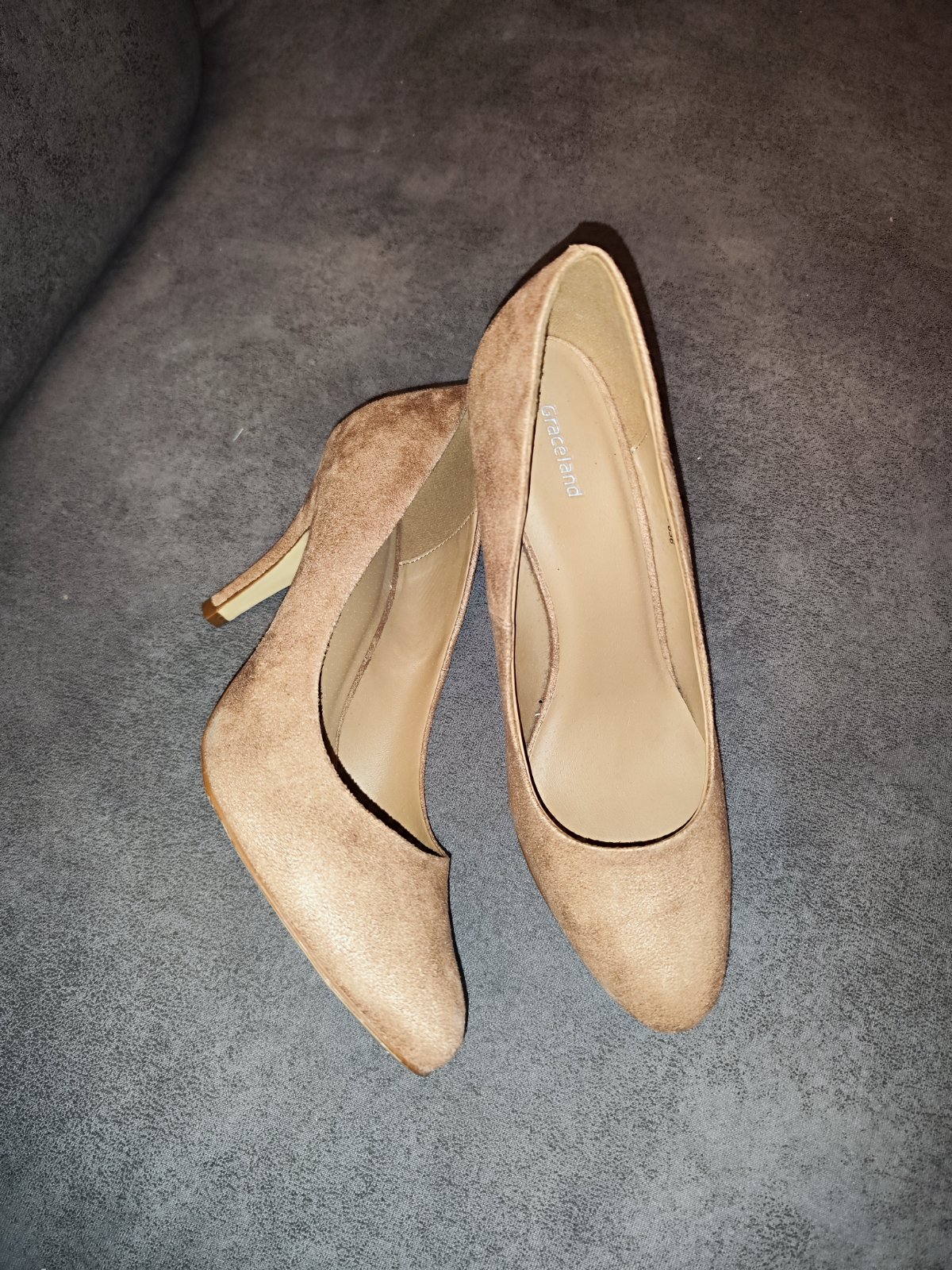 Dámske lodičky,Nosené minimálne v skvelom stave. Bledo hnedá (ťavia) farba, opatok poriadku bez poškodenia. Veľkosť 40. Noha 25.5cm. značka graceland