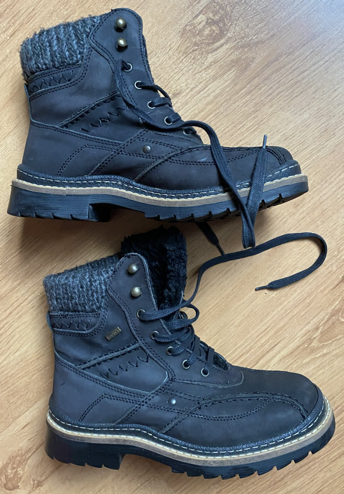 Kvalitné teplé pevné topánky Klondike - ULTRATEX v. 39 - Taliansko, vrchný materiál koža, NAPA + vnútorné zateplenie syntetická kožušina, sýta čierna farba (niektoré foto osvietené, 2x obuté obuté, v top stave, bez poškodenia.
