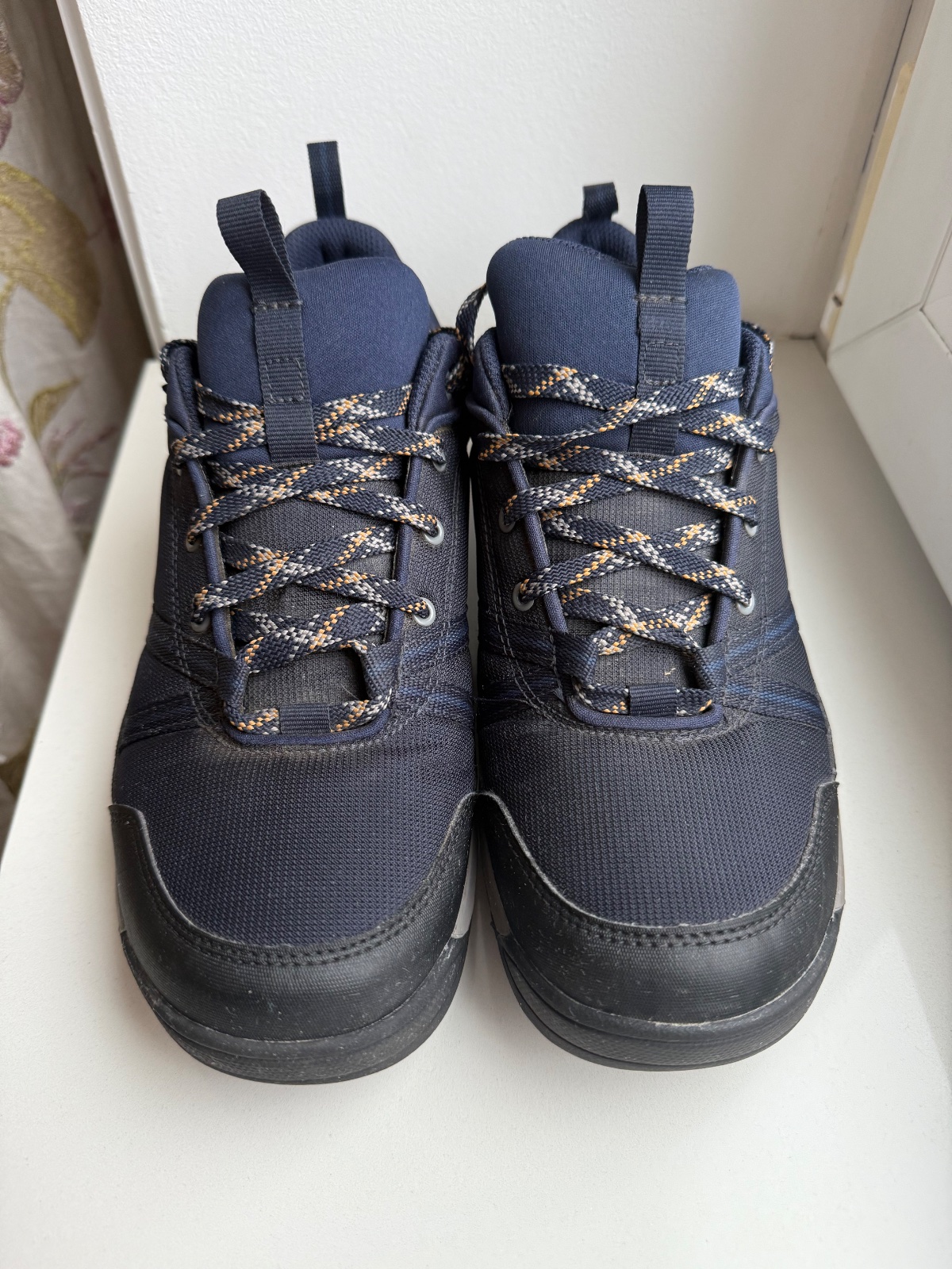 Outdoorove topanky / tenisky tmavomodrej farby, nepremokave. Velkost 40, VD 26cm. Znacka quechua, kupovane v Decathlone nove, pouzite minimalne, top stav.