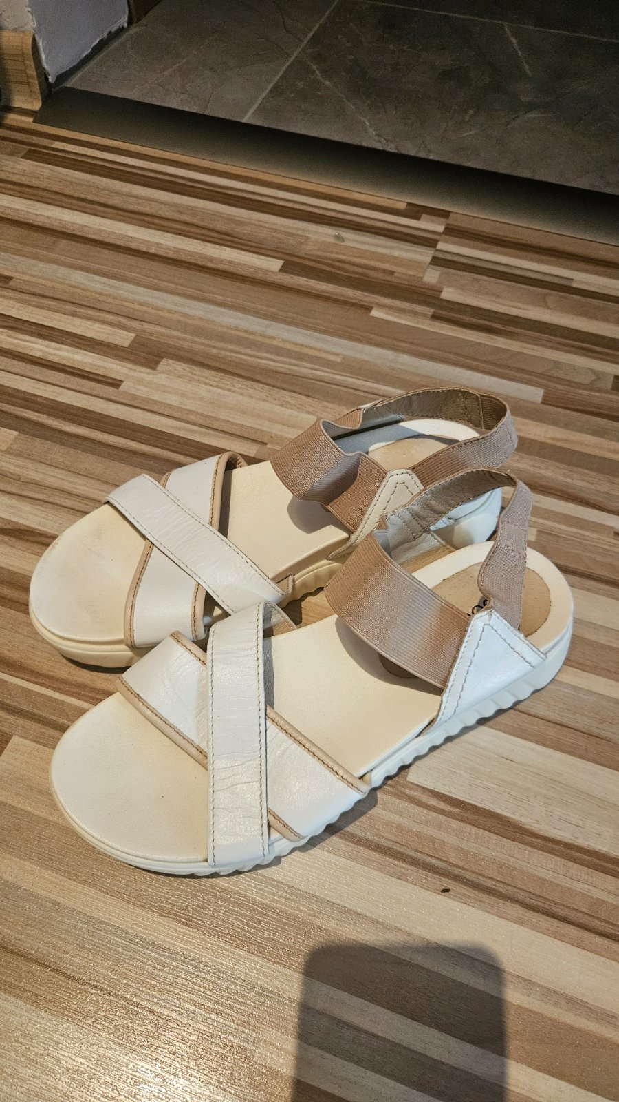 Letné sandále s koženou stielkou. Iba dvakrát obuté. Pôvodná cena 39,99€, teraz 18€.