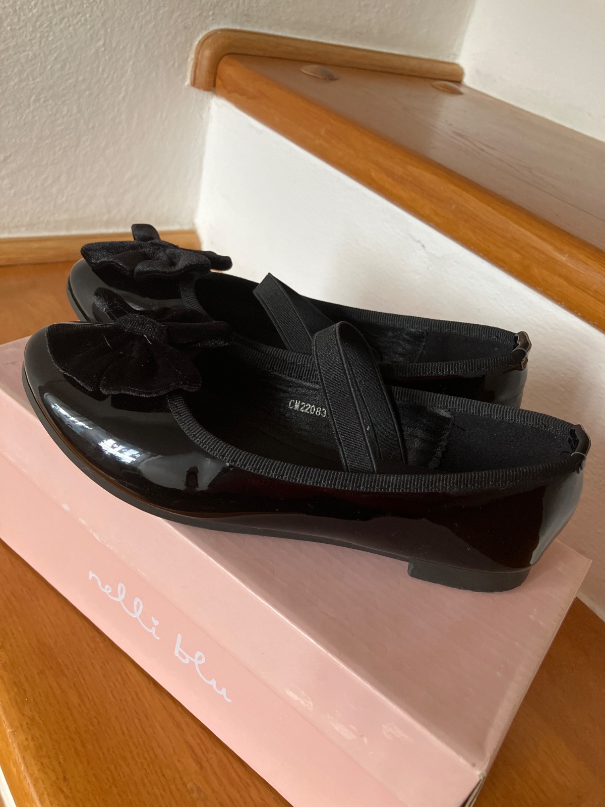 Krásne lakové balerínky so zamatovom mašľou. Málinko nosené vo výbornom stave. Pár jemných škrabančekov. Veľkosť uvedená 34, no v žiadnom prípade nezodpovedá, max 33