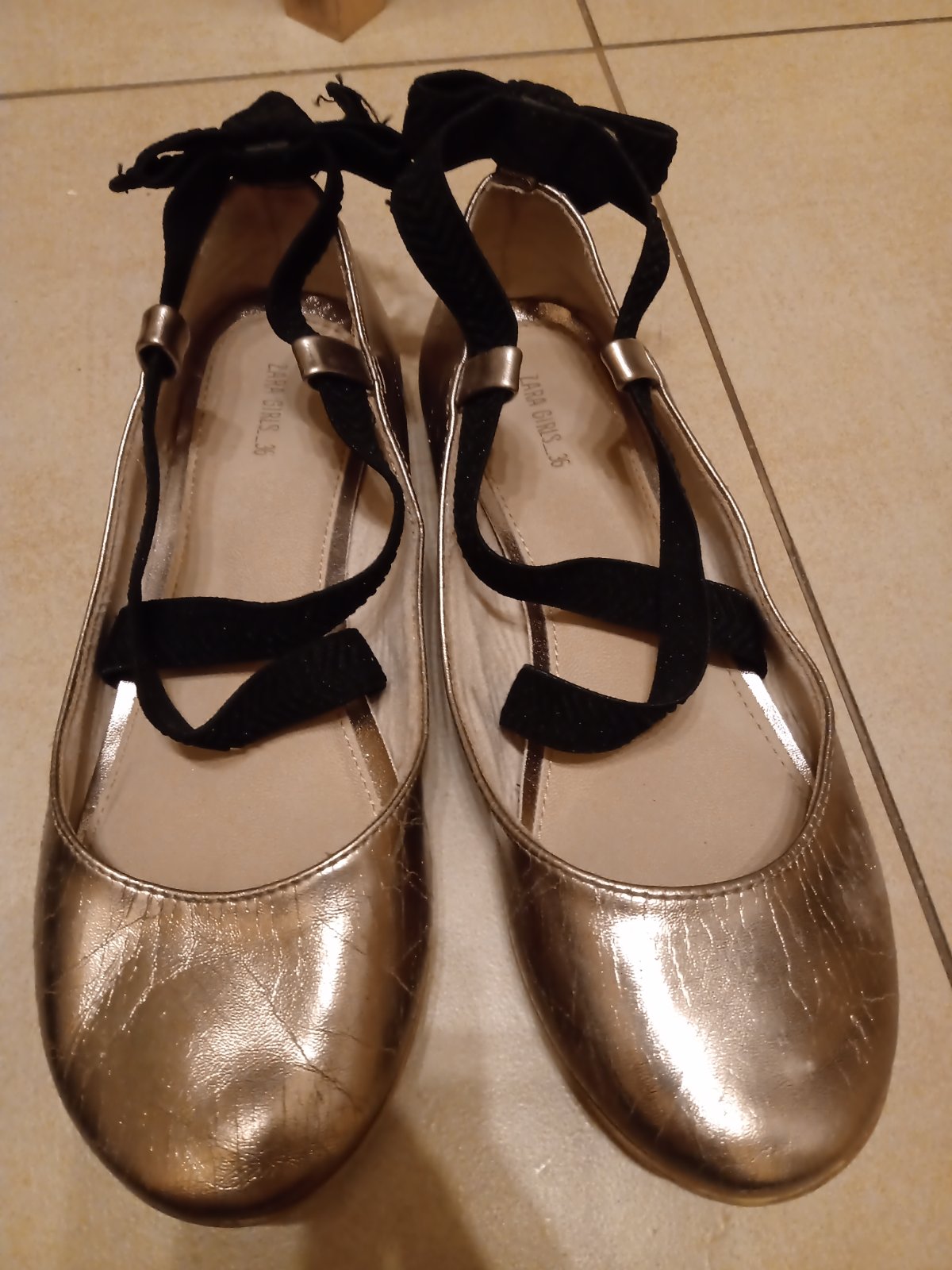 Predam raz pouzite balerinky, velkost pisana 36 od znacky F&F, vyborny stav, nemaju ziadne poskodenia, ako nove. Cena za 5e.