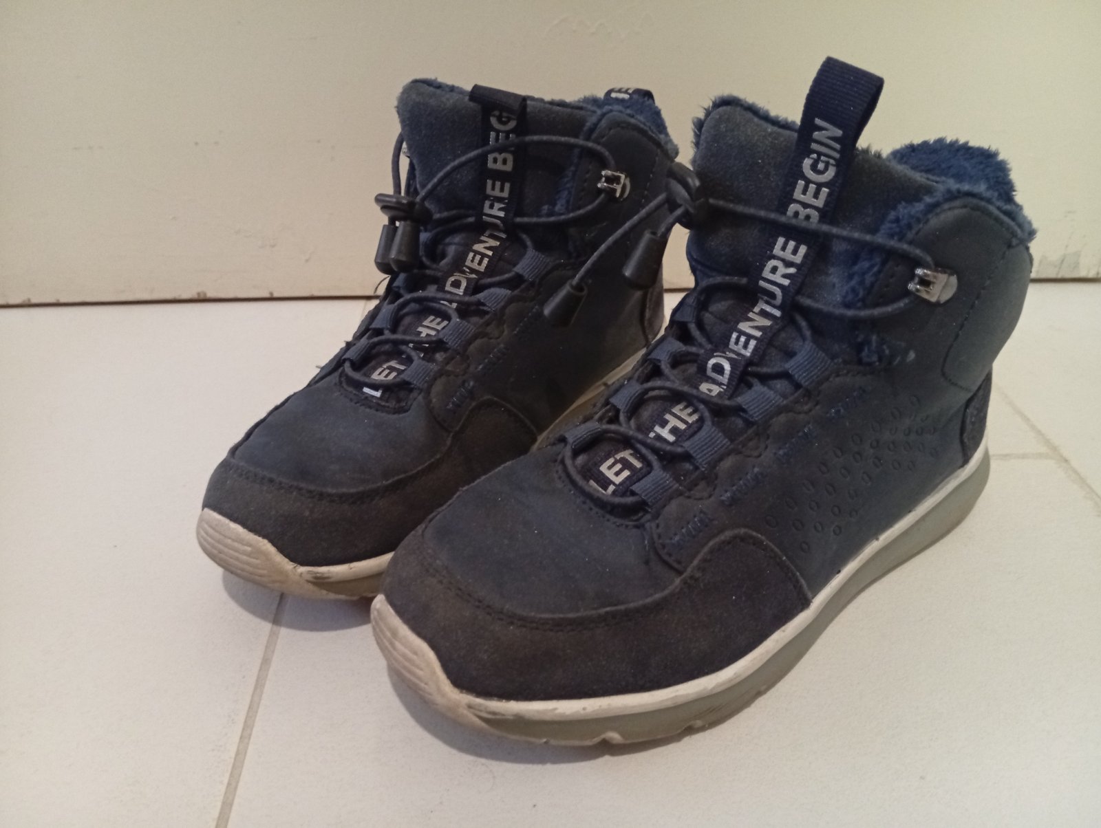 Zateplené zimné topánky, pohodlné, v dobrom nosením stave, ľahké zapínanie na gumičkové šnúrky s doťahovaním, veľ. 33/22,5cm