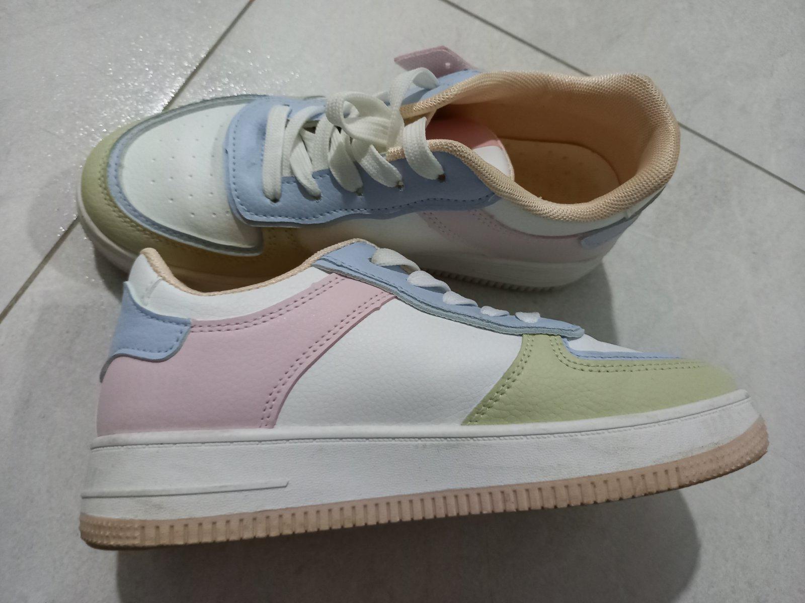 Super dámske tenisky na mierne vyššej podrážke. Obute cca. 3x, takže ako nové. Velmi príjemná farebná kombinácia.