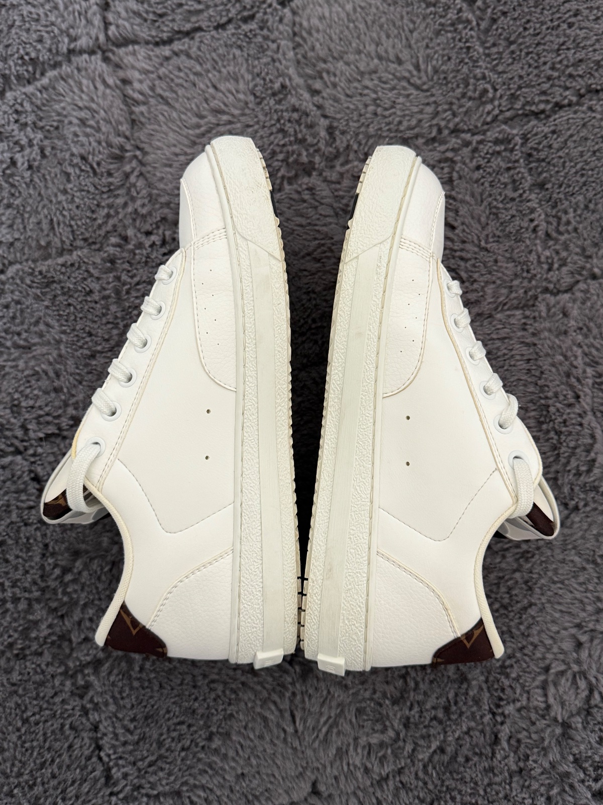Luxusné biele tenisky Louis Vuitton Charlie. Biela koža doplnená o hnedý monogram LV Cacao na zadnej časti a nadrozmerné logo LV na boku. Nosené, bez poškodenia. Nosenie vidno mierne na bielych látkových častiach ako sú šnúrky a jazyk. Nedá sa tomu pri nosení zabránit, inak super stav. Všetko je na foto. Velkost 38. Komplet balenie.