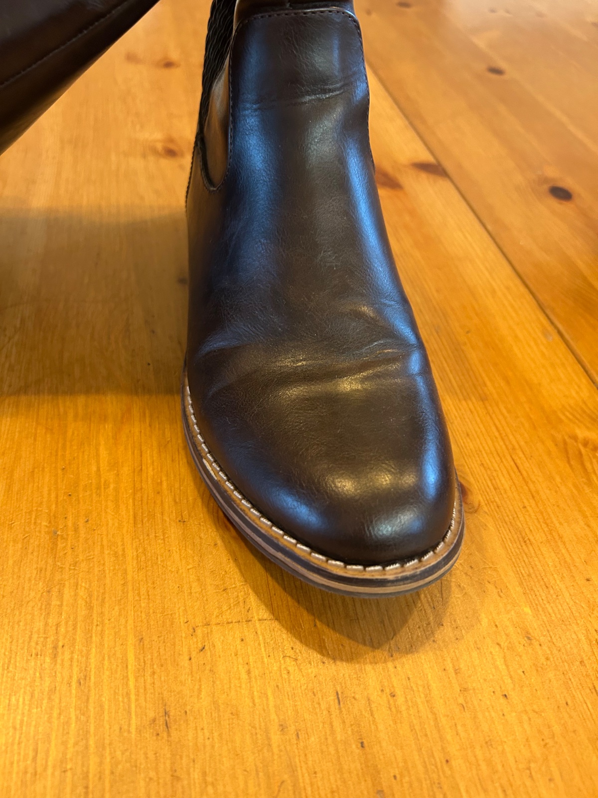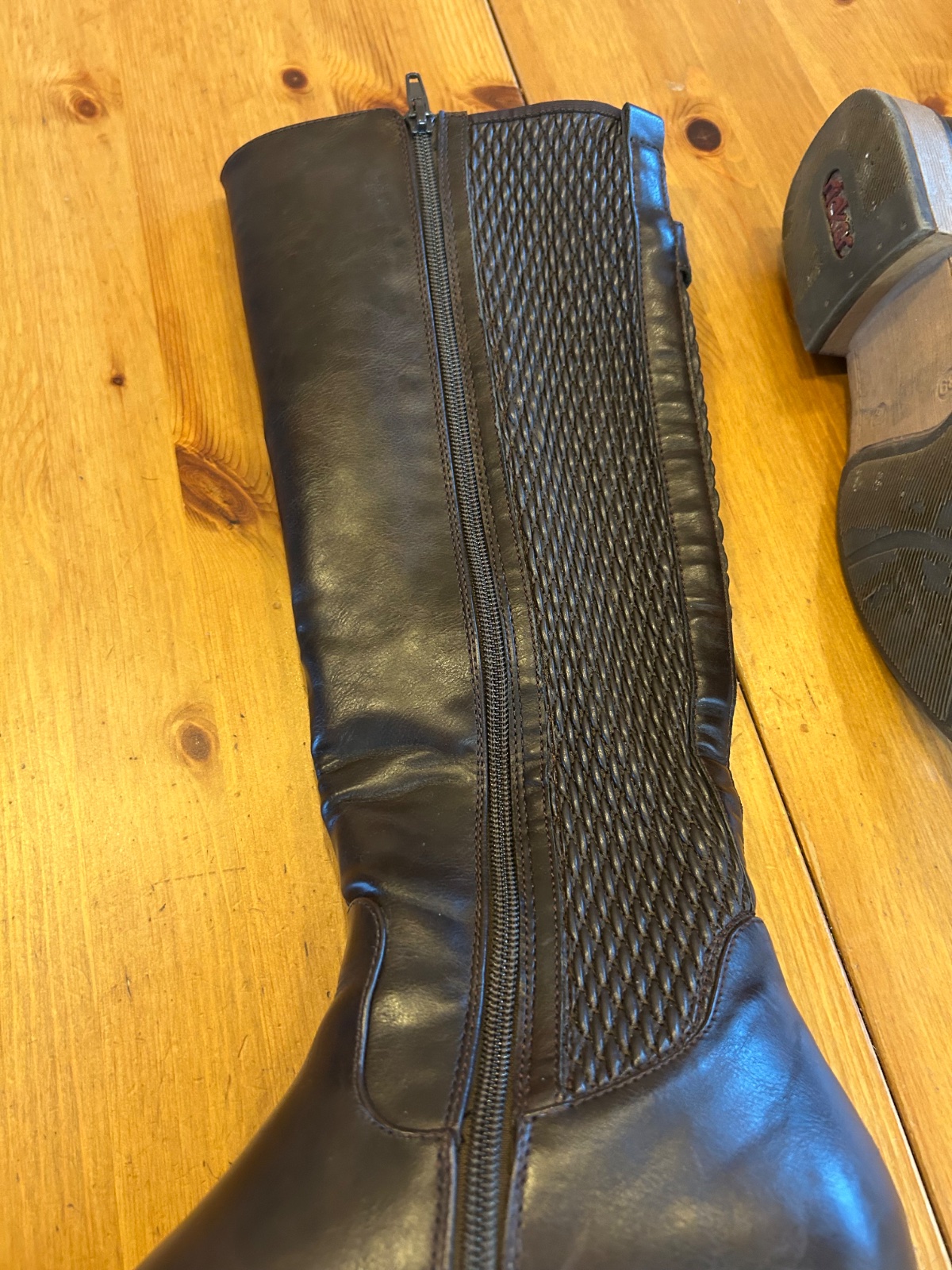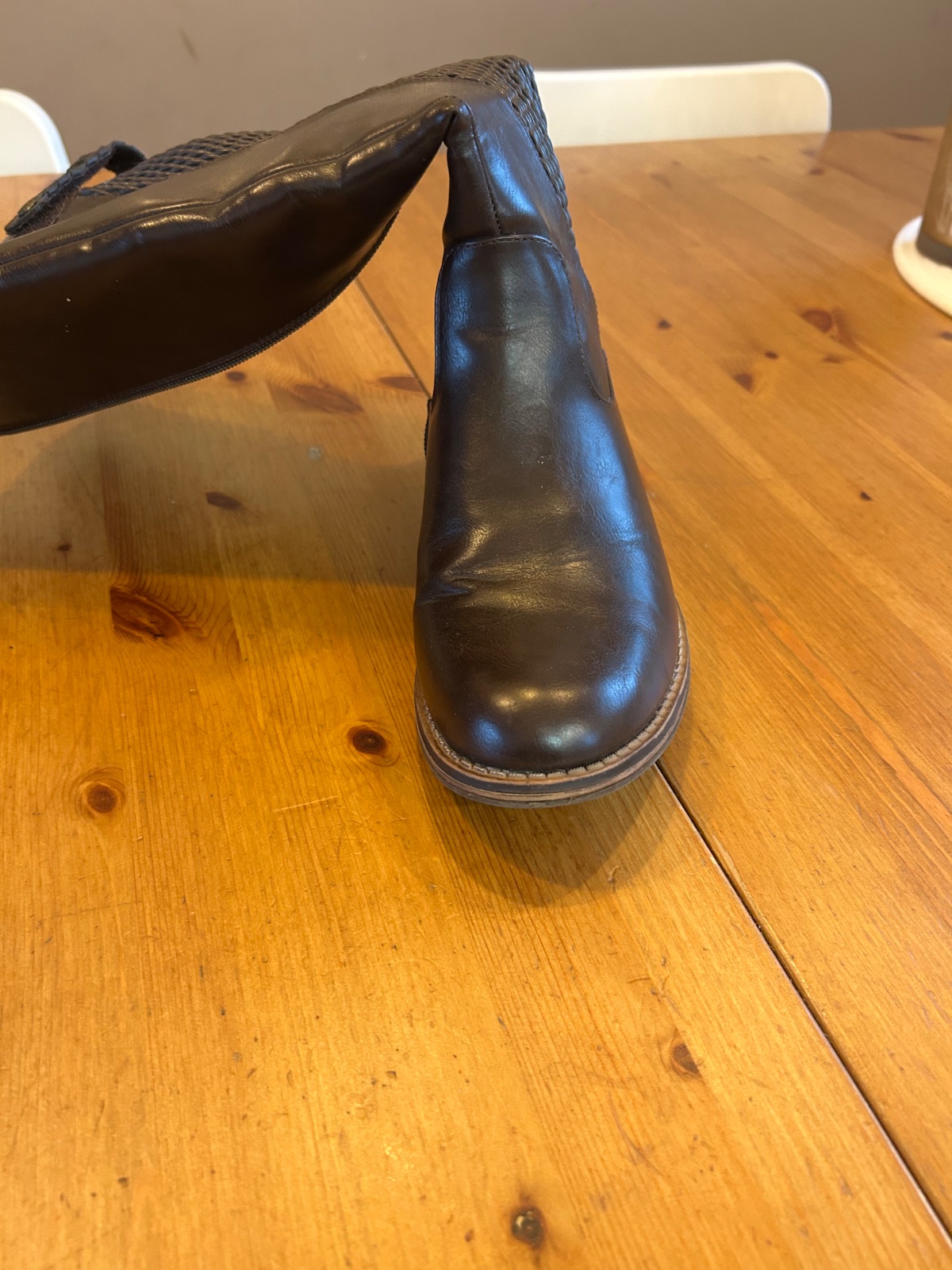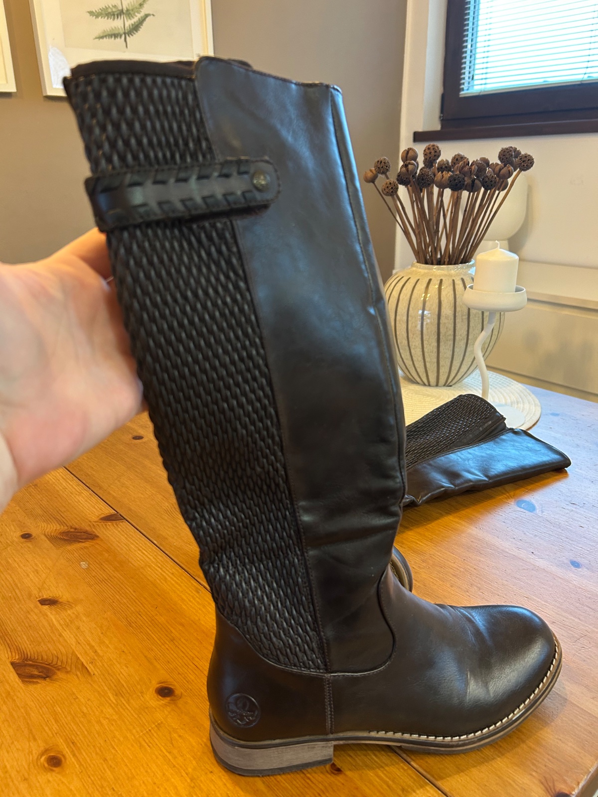 Posuvam krasne tmavohnede cizmy znacky Rieker. Kupila som nove mamine, trochu jej pribralo lytko a uz ich nezapne. Su vo vybornom stave, vid. foto. Pc bola 129 Eur. Kupujete prakticky nove cizmy. Su ozaj krasne. Vhodne skor na uzsiu nohu. Maju ale velku strecovu cast, takze sa nohe prisposobia, nie su pevne.