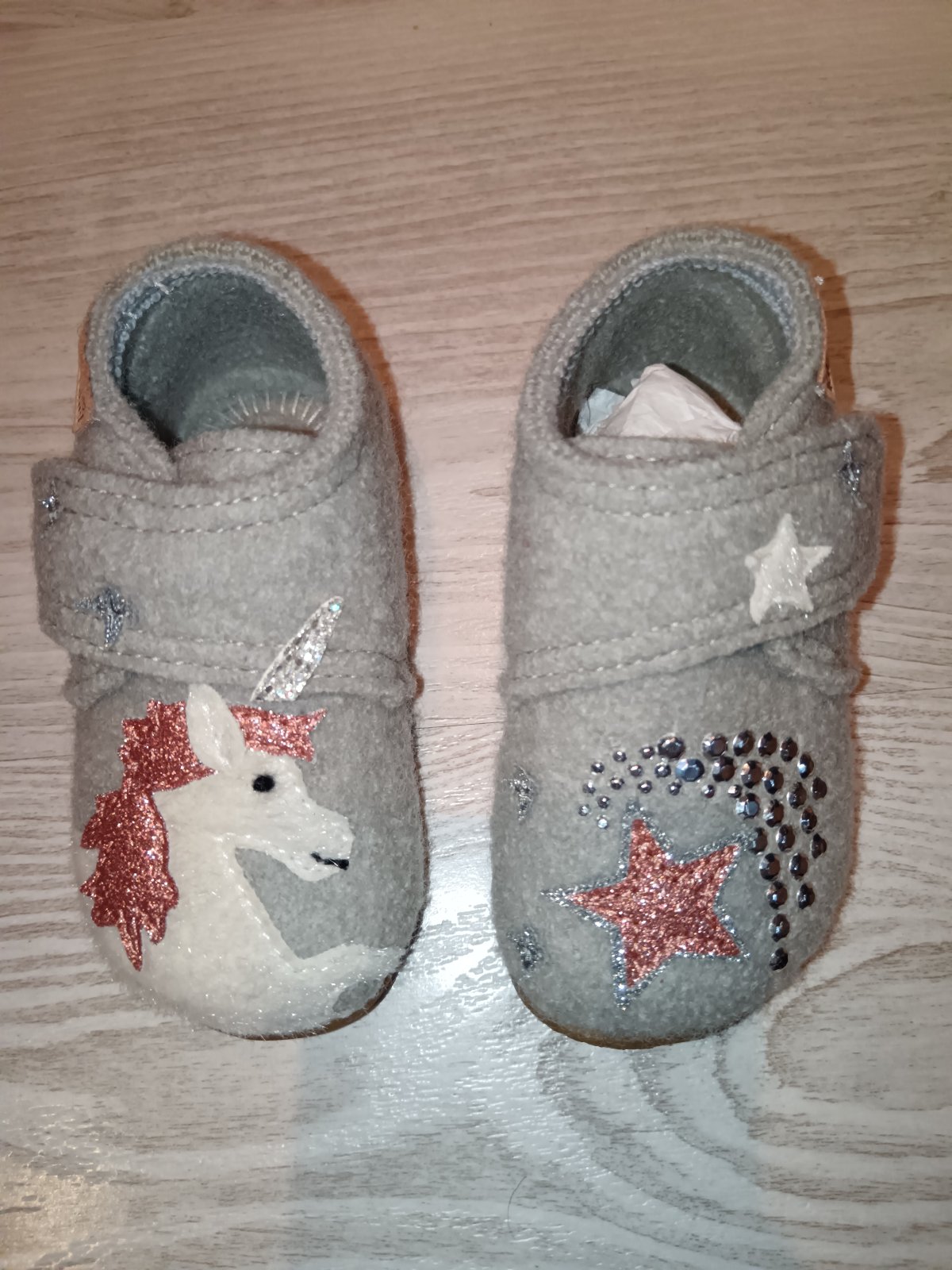 Nové papučky veľkosť 20, vnútorná dĺžka 12,5cm, mäkkučké ohybné a protišmyková podrážka. Zapínanie na suchý zips, odporúčam. Cena 12€ za pár.