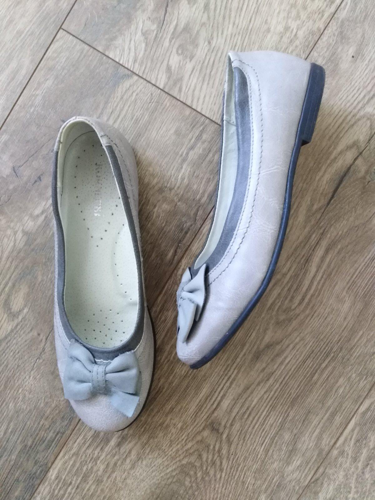 Mám ich odtiaľ z MK, veľmi sa mi páčia, no tlačia ma. Myslím, ze je to skôr detská 36 než dámska. VD je max. 23,5cm. Uvedená je velkost 36, ale je to niečo medzi 35-36. Vhodné pre štíhlu nôžku. Kožené je vnútro a mašlička je tiež z kože.