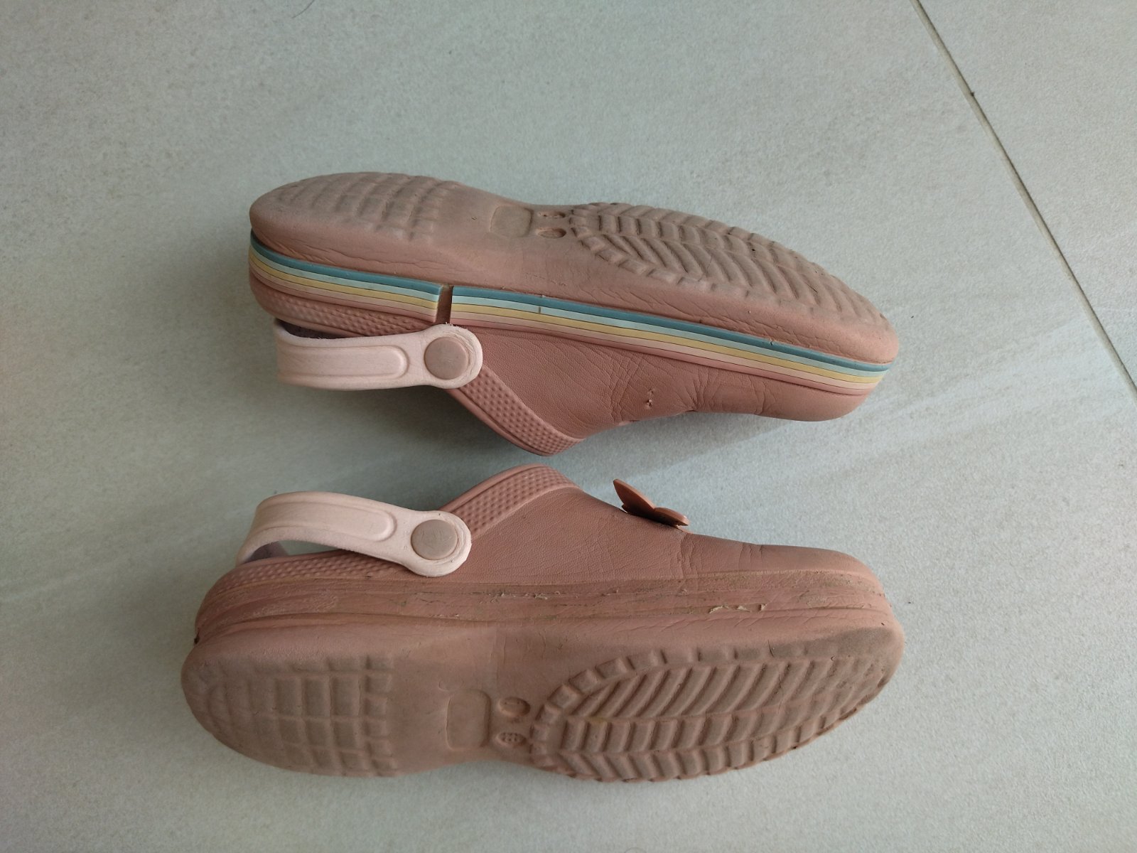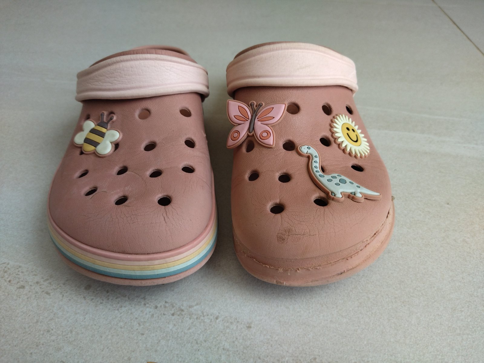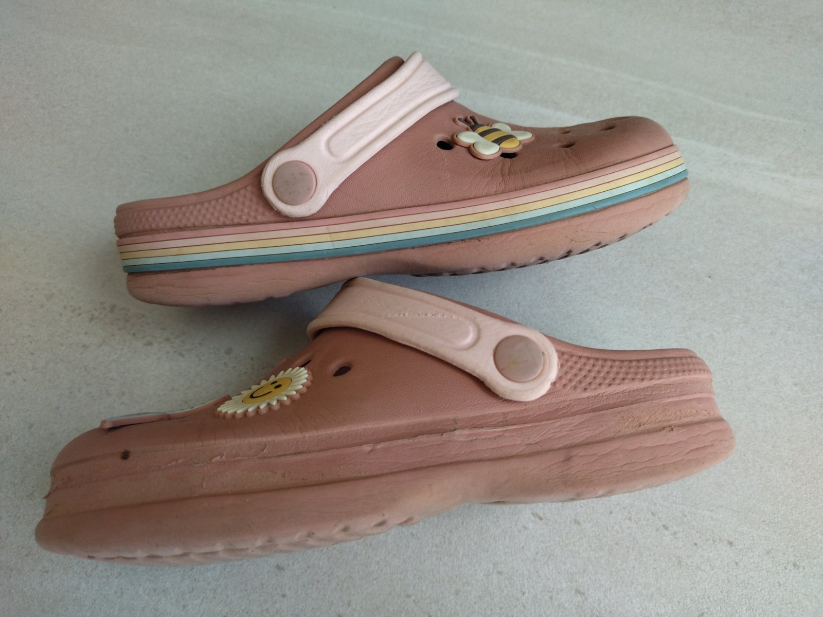 Predám krásne kroksy zn. Next. Nevydratá podrážka. S dúhovým pásom po obvode a veselými ozdôbkami. Dúhový pás na jednej topánke žiaľ chýba. Super aj do vody. Sú mäkké, ľahké a pohodlné. Velkost 33