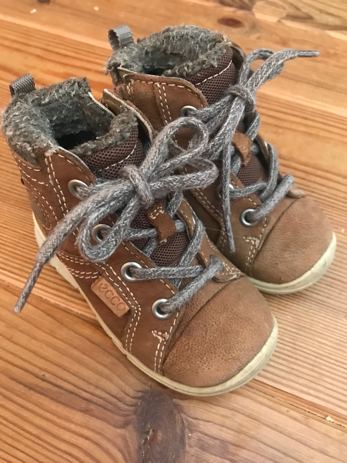 Málo nosené, veľmi teplúčke zimné topánky na šnurovanie, majú kopnutú špičku, vidno až pri detailnom pozeraní. Vhodné po vonku na sneh, sánkovačku. Vnútorná dĺžka 14 cm