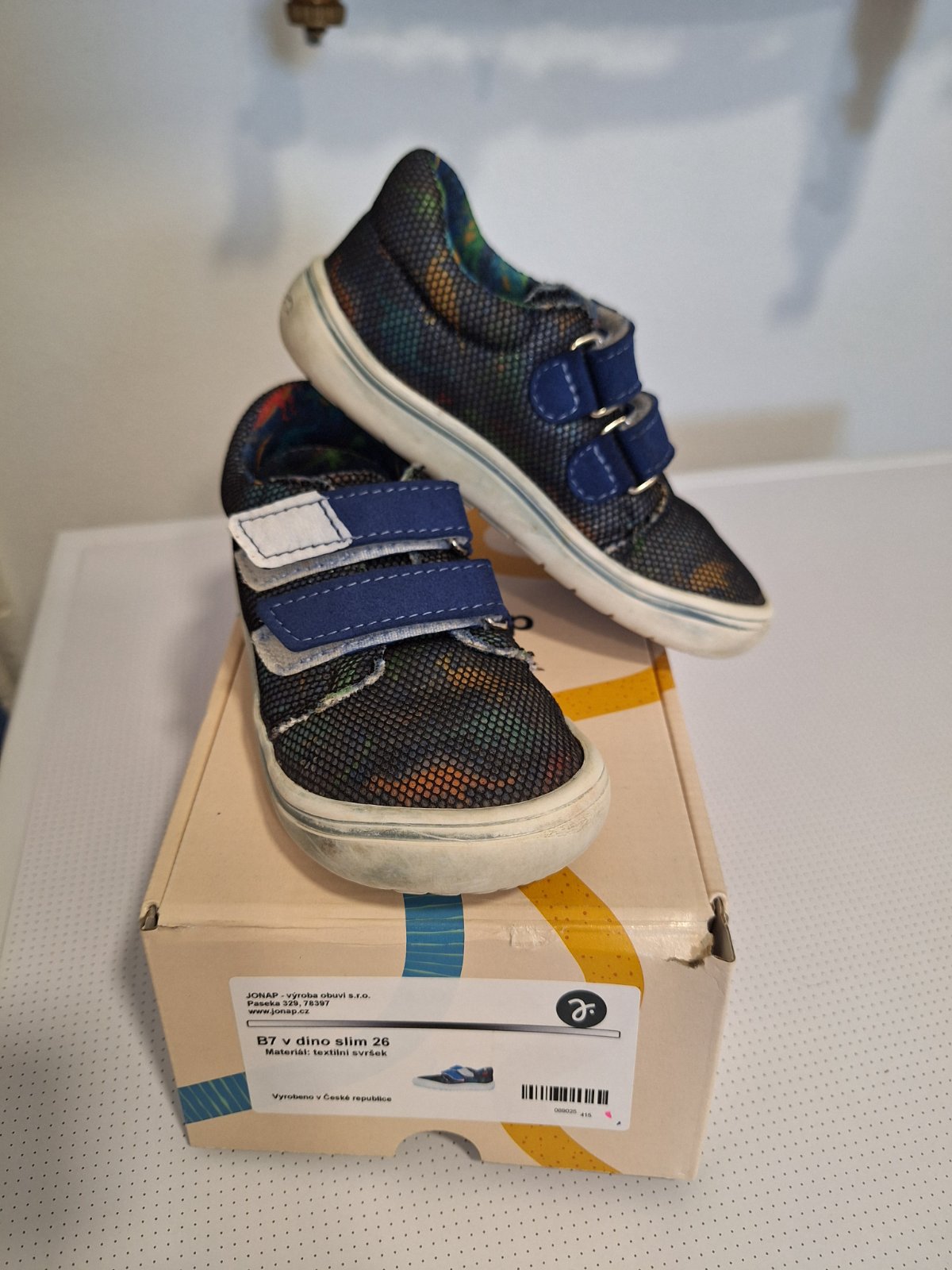Kozenne tenisky jonap slim, velkost 26. Vo vybornom nosenom stave, vlozky su nenosene, mali sme ine. Vnutorne rozmery 16.6 x 7,4 cm