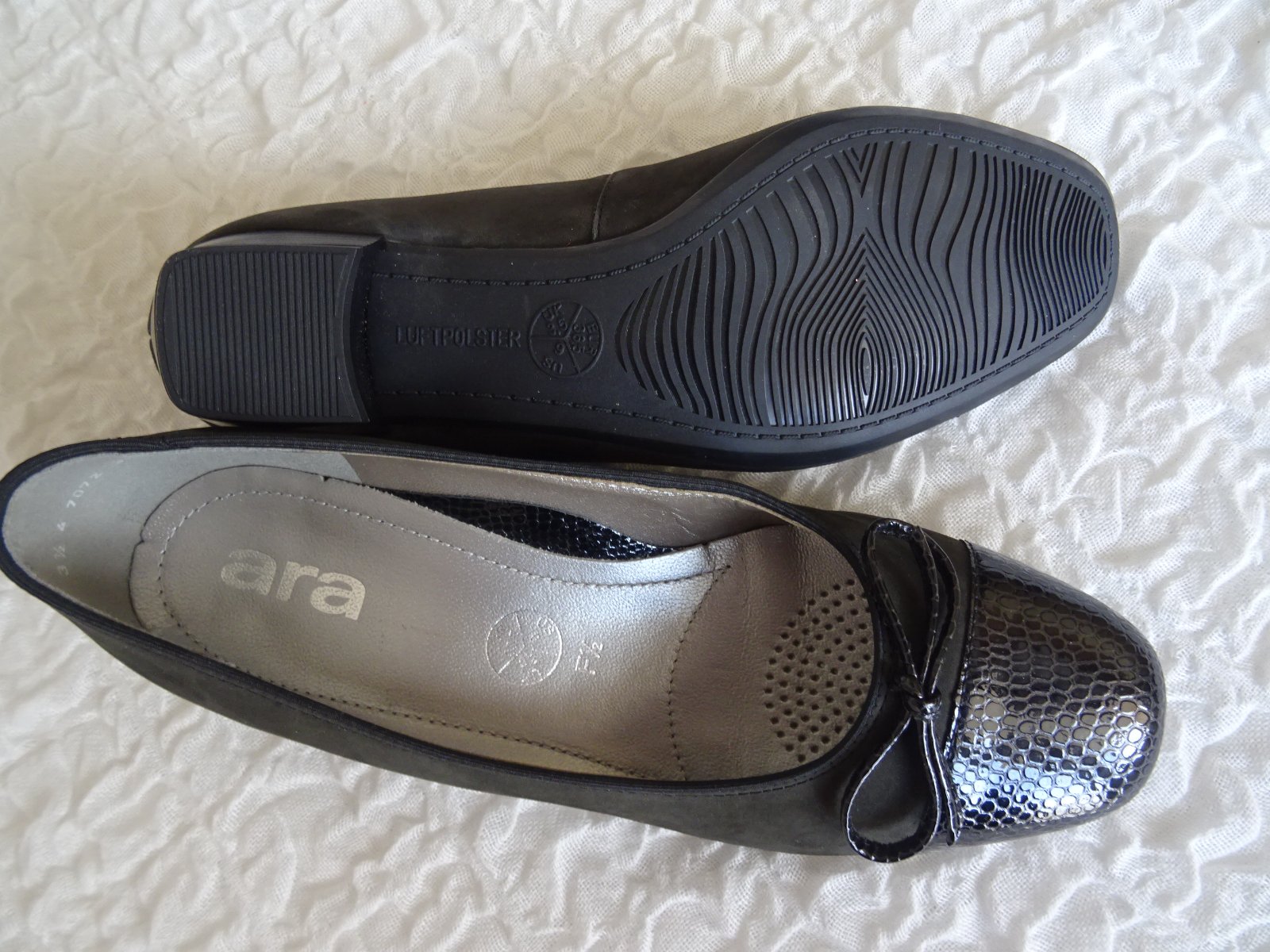 Značkové, celokožené lodičky Ara luftpolster, veľ.36,5, vnútorná dĺžka 23cm. Lodičky majú stabilný, 4cm vysoký podpätok. Sú elegantné, z vysokokvalitného materiálu, pohodlné na nosenie.