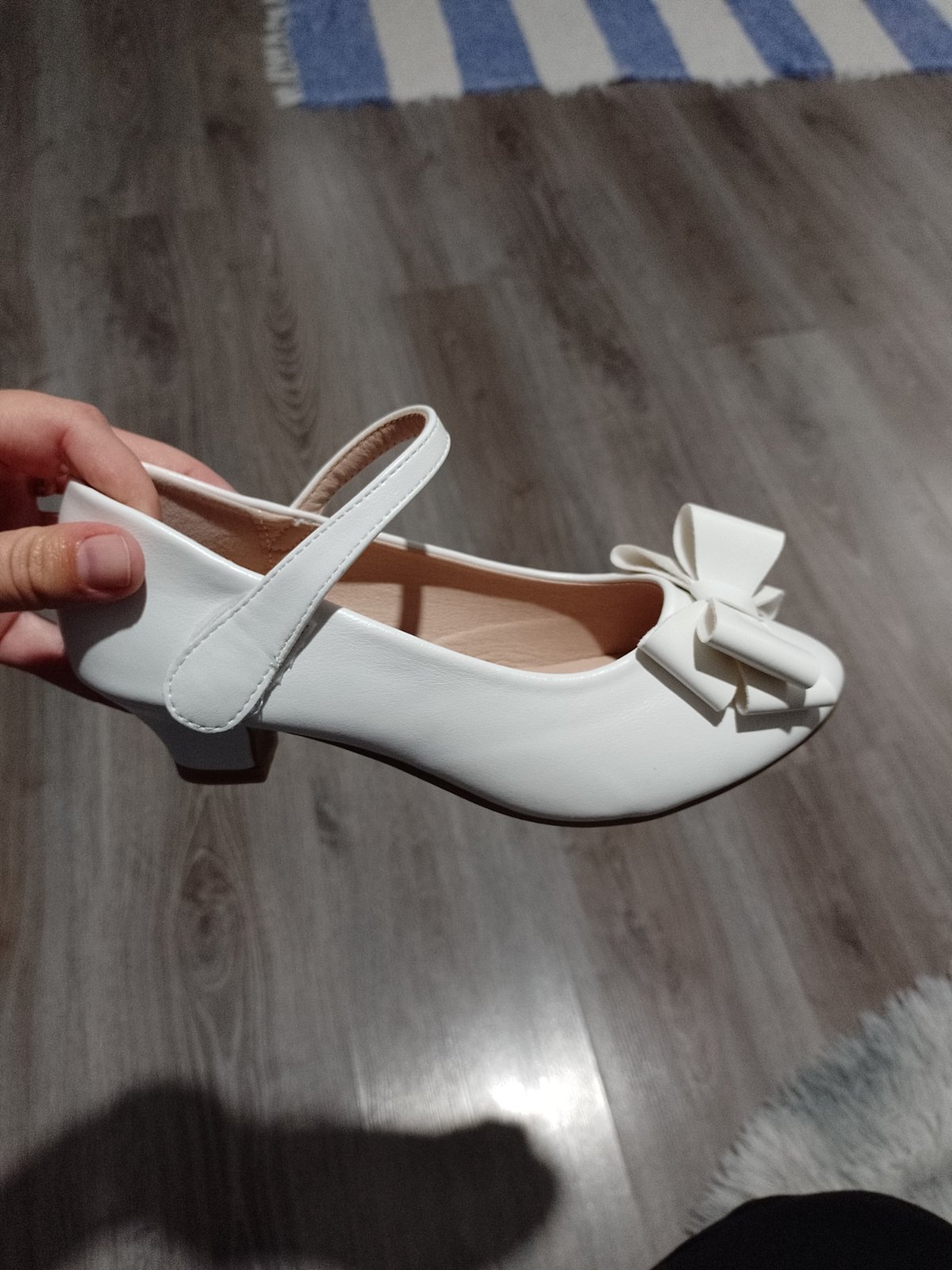 Dievčenské topánočky vhodné na 1.sv.prijímanie, číslo 34.Sú pohodlné. Vpredu na špičkách úplne minimálne viditeľné škrabančeky- pri dlhých šatách nič nevidno.