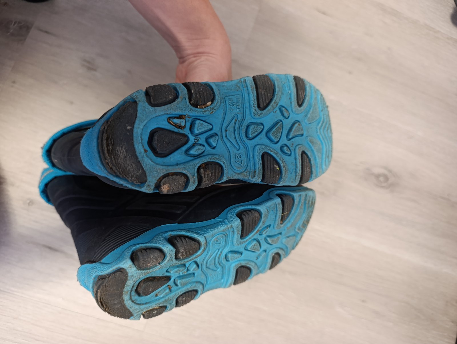 velmi dobry stav, max 3 krat obute, maju skrabance ale na tej modrej s trblietkami to velmi nevidno, iba ked sa zblízka prizriete, vnútorná dĺžka 17,5cm