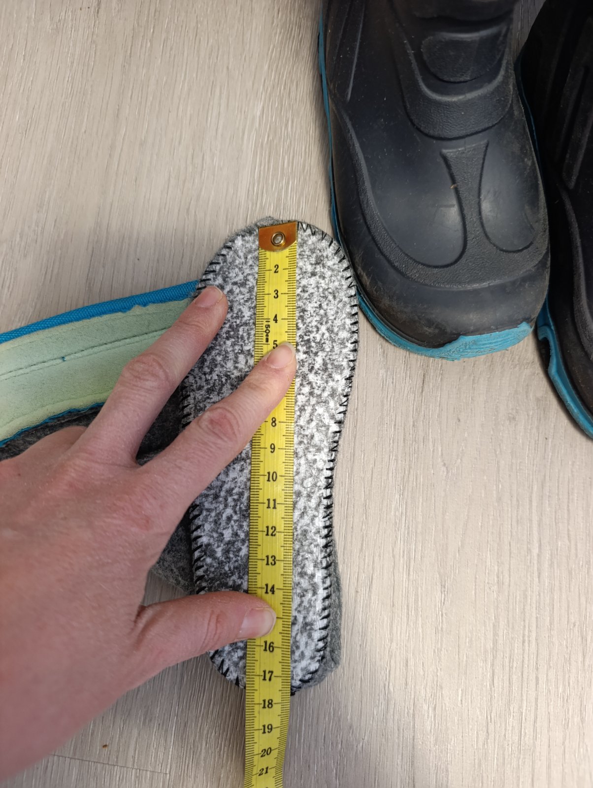 VD cca 18cm, chýba vložka do topanky, teraz je tam vložená z menších gumákov.