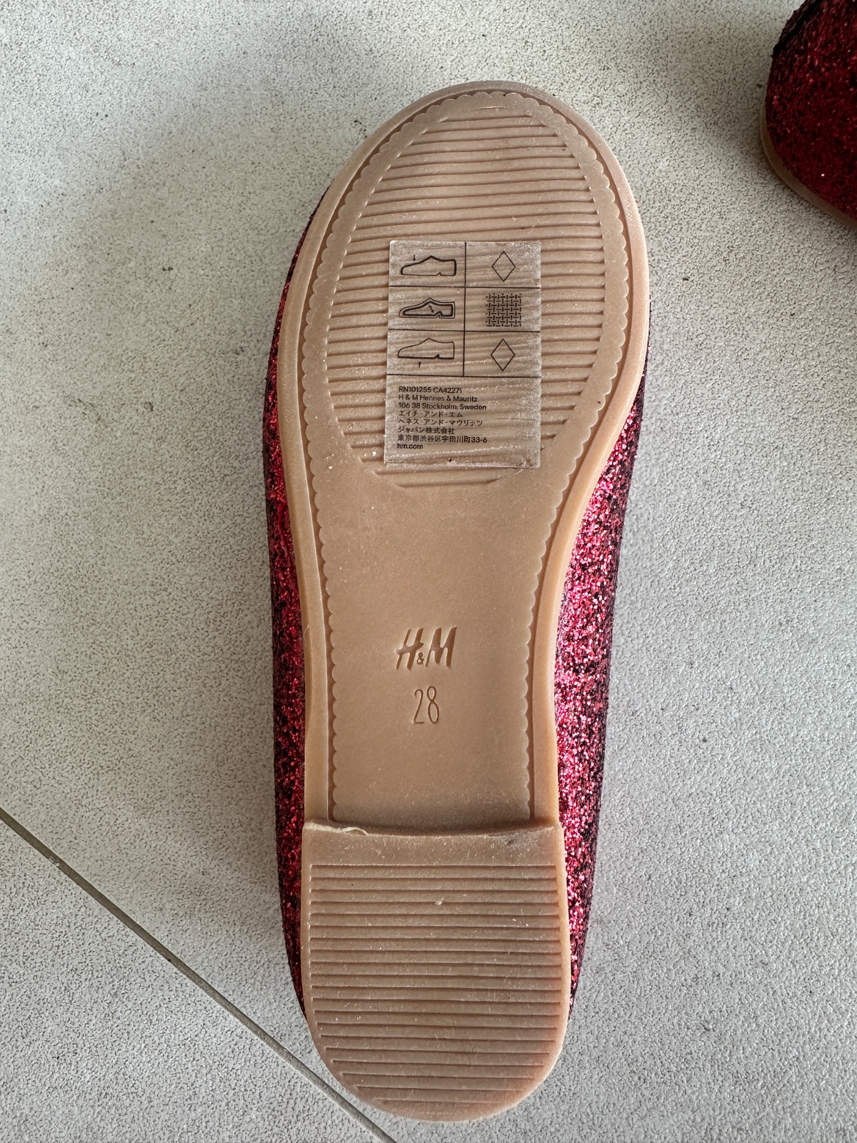 Ponukám Balerínky sú to červené dievčenské baleríny. Sú trblietavé a majú ozdobný remienok cez priehlavok. Zvršok topánok je trblietavý, čo im dodáva ligotavý vzhľad. Na špičke každej topánky je ma...
