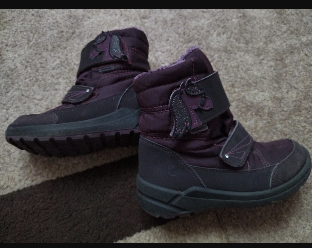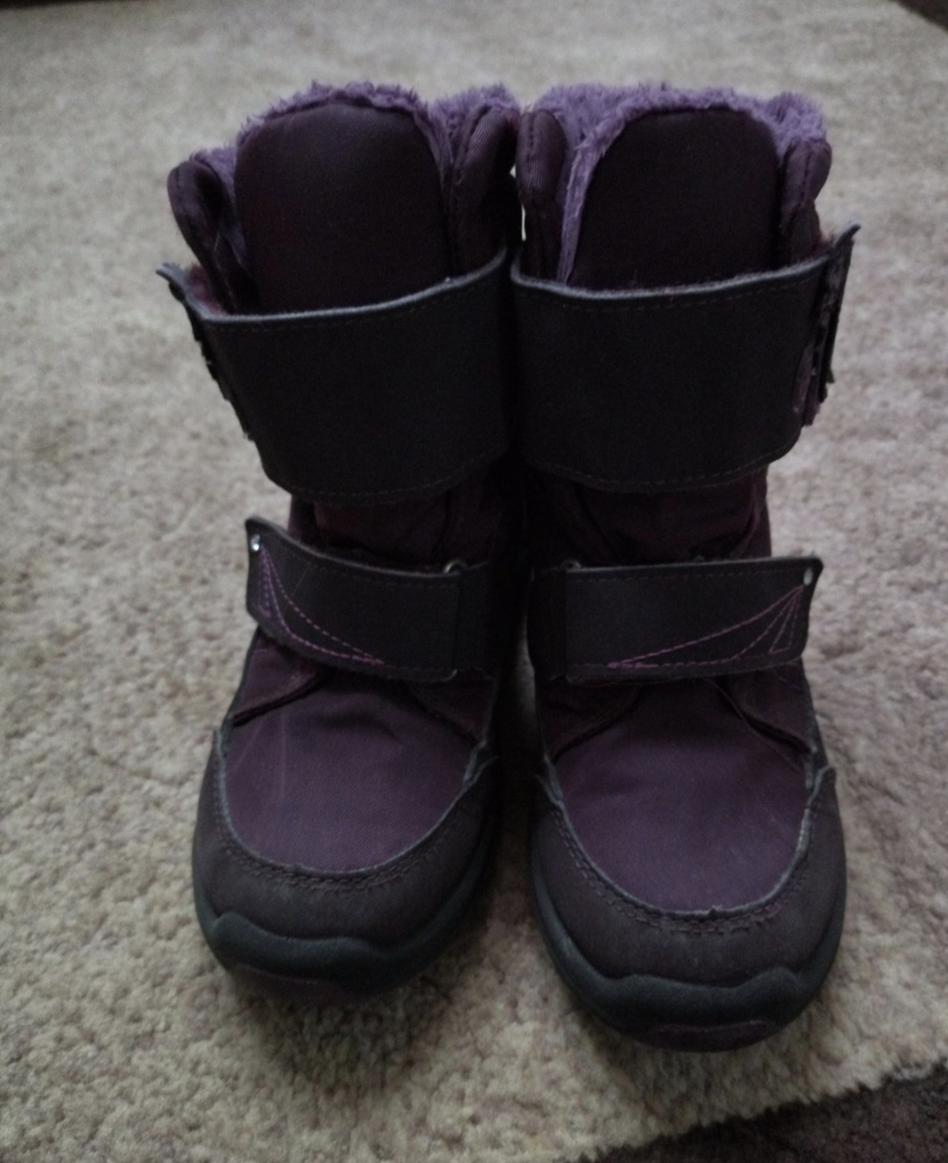 Krasne cizmicky ,fialovej farby,na foto su bledsie v skutocnosti sytejsia farba.Super stav ,len sme stratili jednu vnut.vlozku,ale sme dali nahradnumaterial semis.Vnut.dlzka merana vybratim vlozky ...