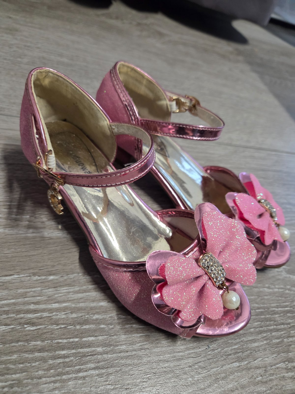 Krásne trblietavé sandalky na opätkoch, vnútorná dĺžka od kraja po kraj 19 cm.