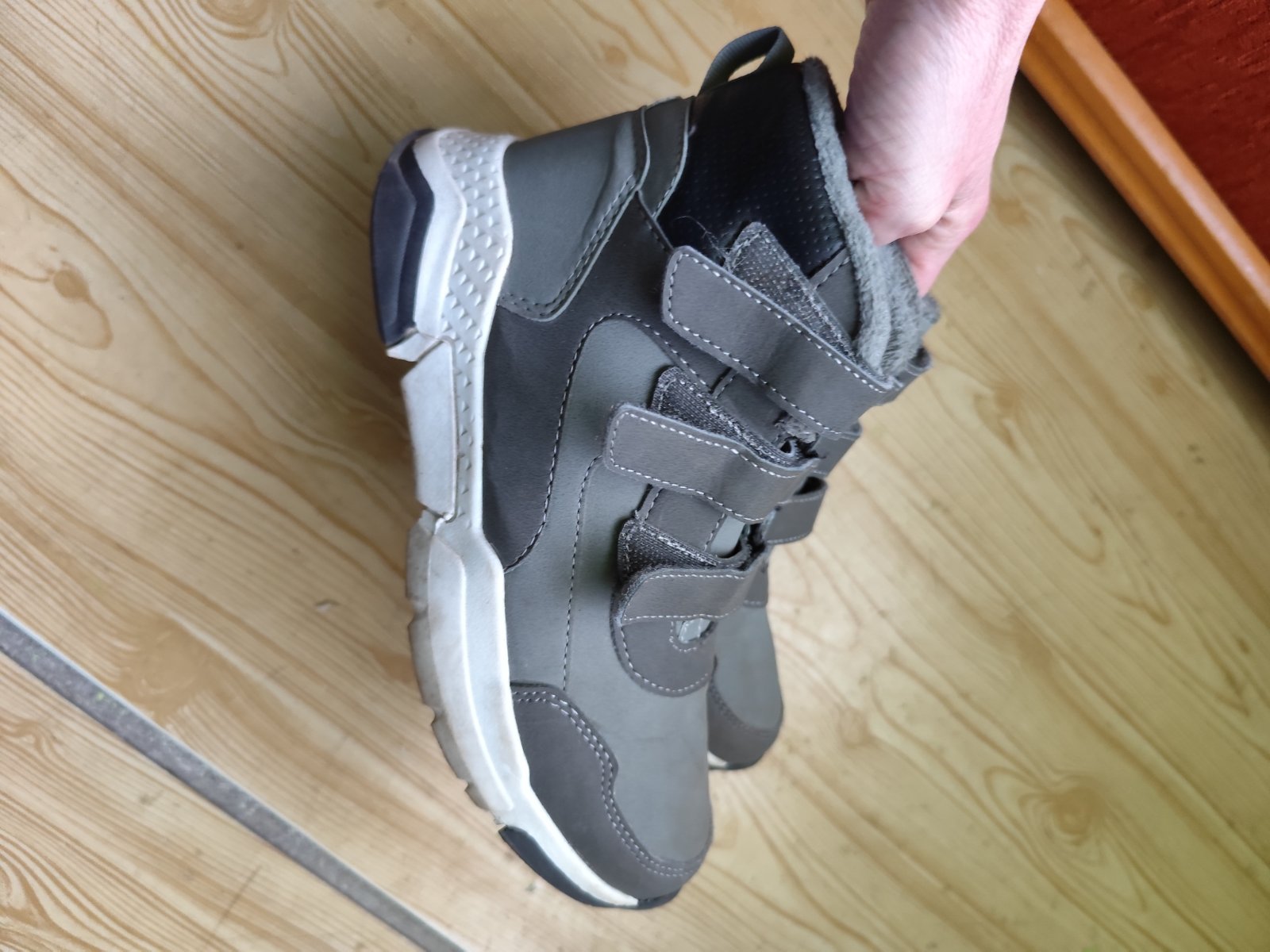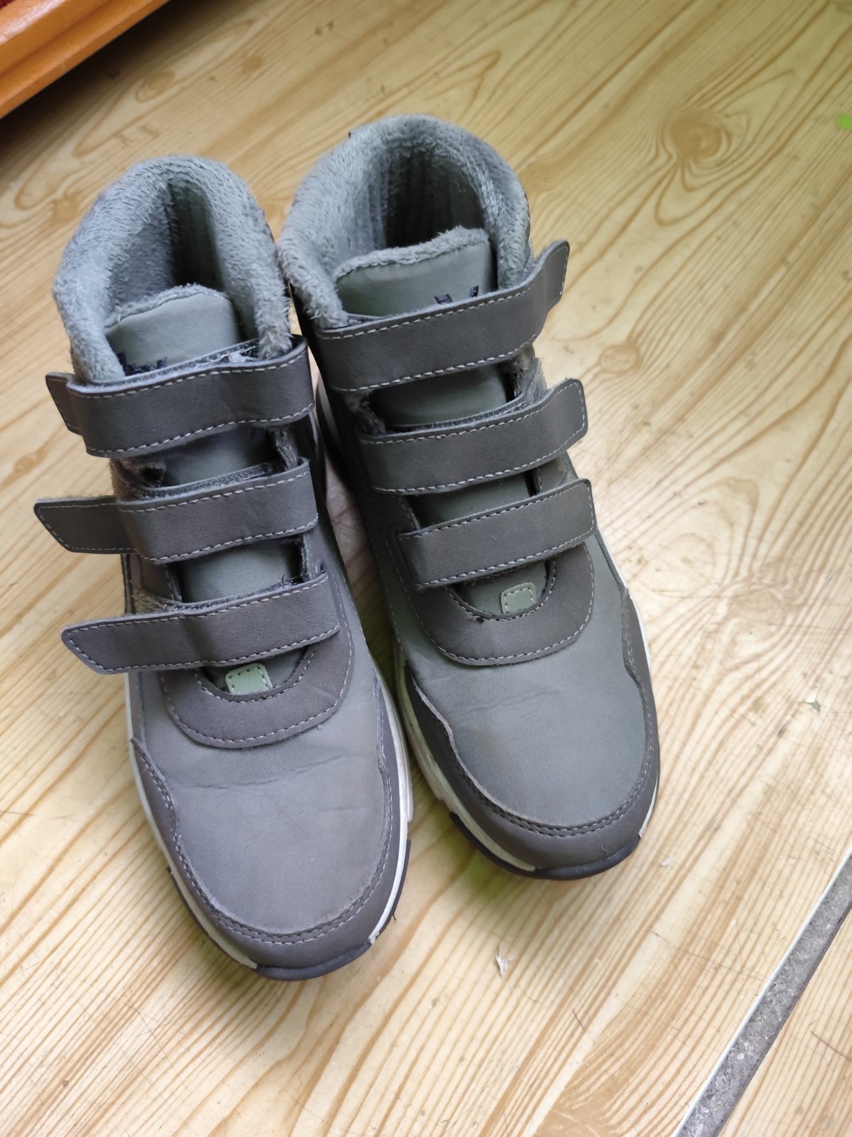 Čižmičky na prechodné obdobie, prípadne teplejšiu zimu. Vpredu šuchnuté (viď foto), zohľadnené v cene. Vnútro jemnučký plyš. Vn. dĺžka 23,2cm. Obyčajné poštovné - 2€.