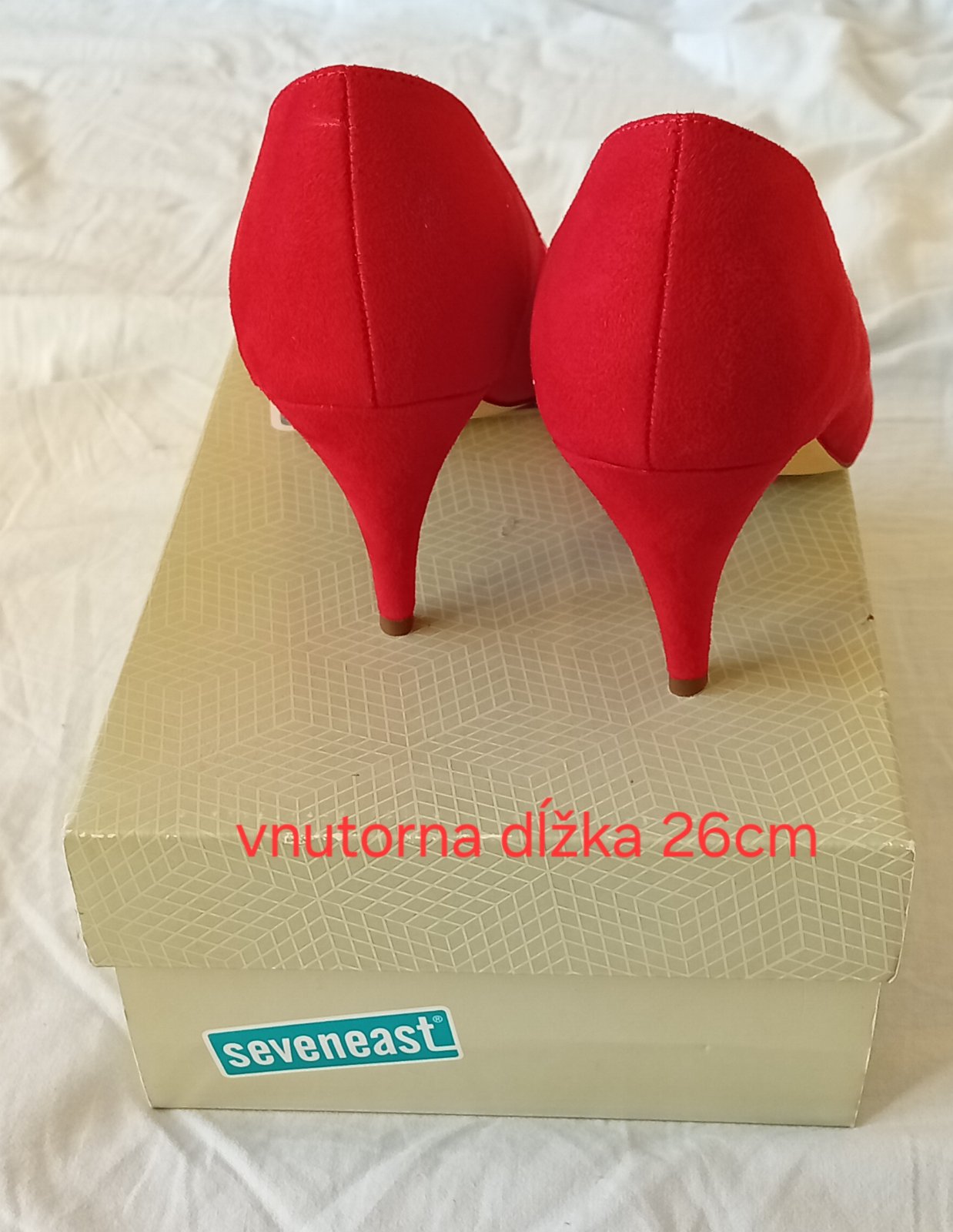 Ponúkam na predaj červené lodičky veľ. 40, vnutorna dlzka 26 cm.