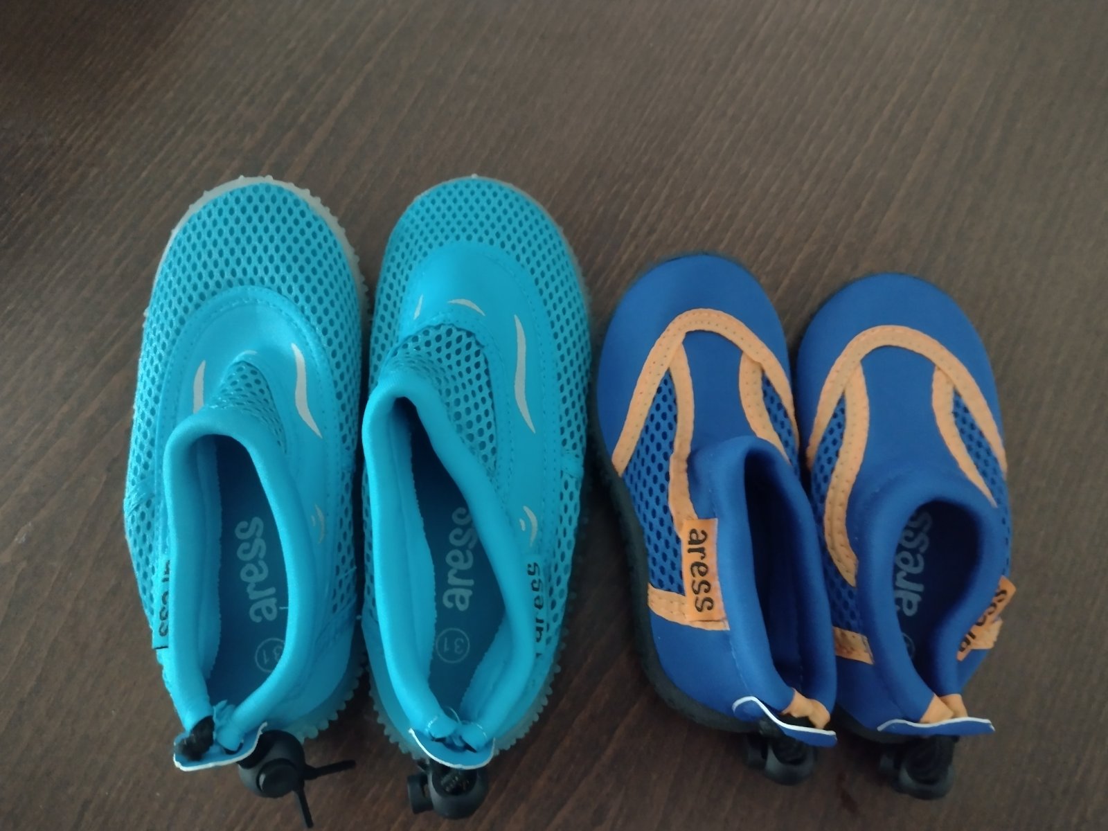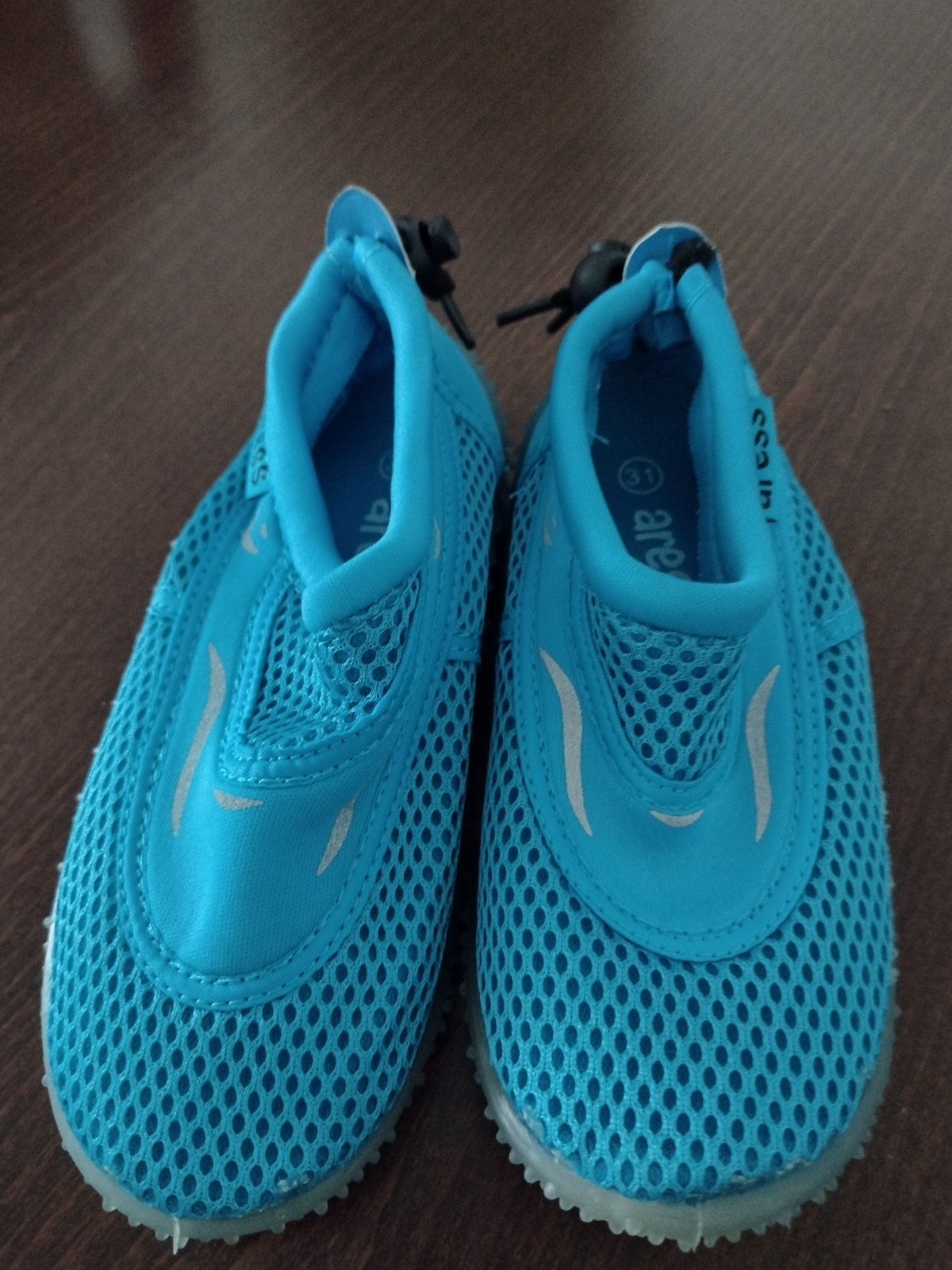 Úplne nové tmavomodré topánky do vody č.25.Druhé svetlomodré č 31.Ani jedny neboli obuté ani raz. Každé po 5e.