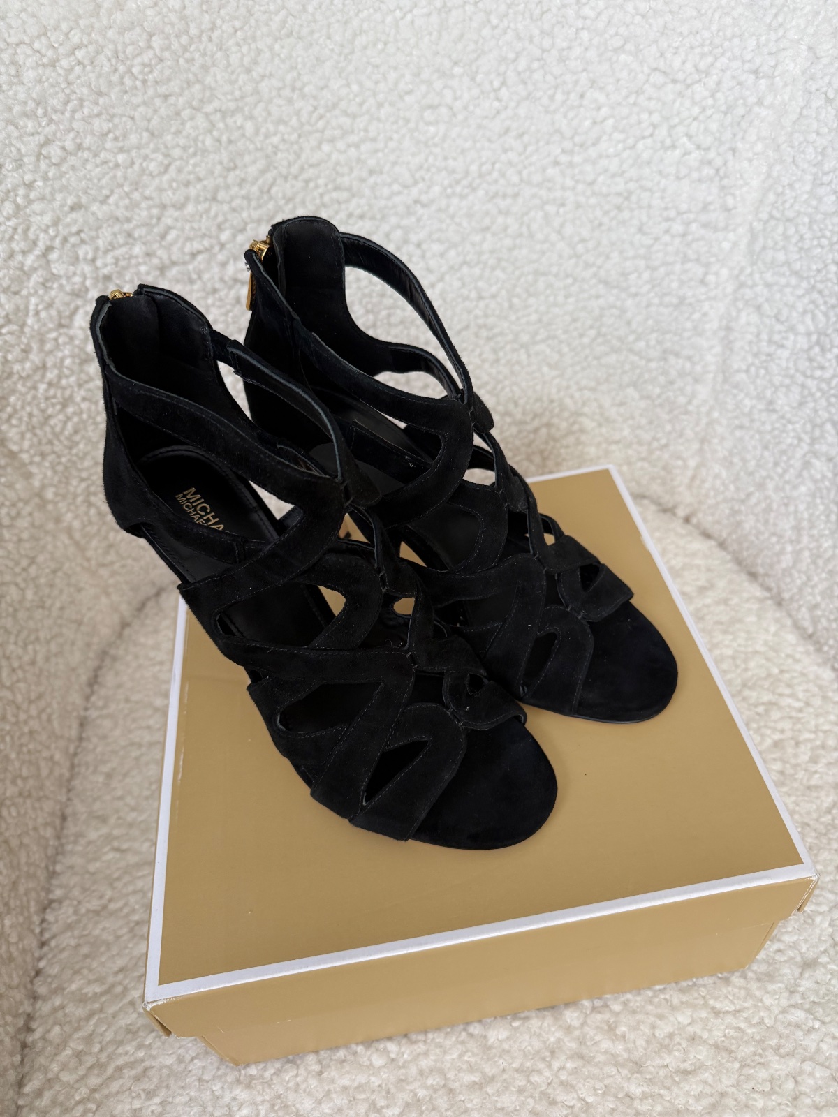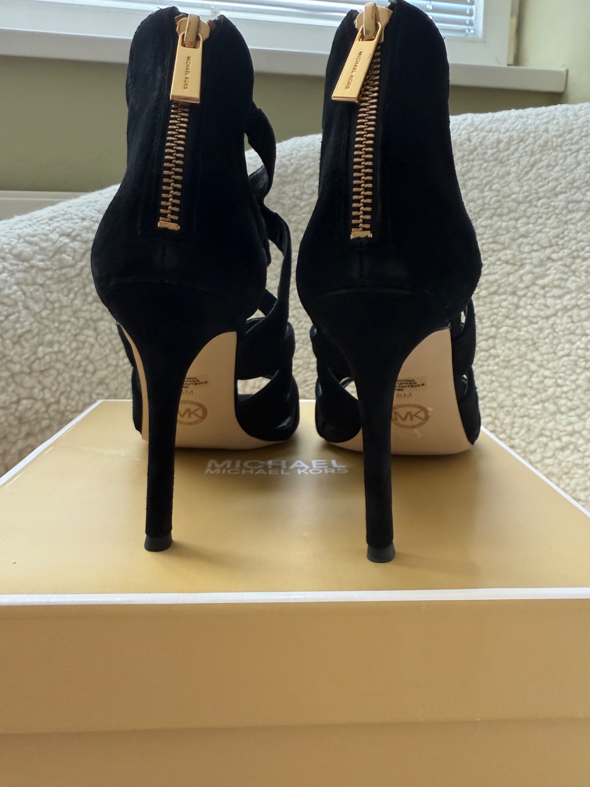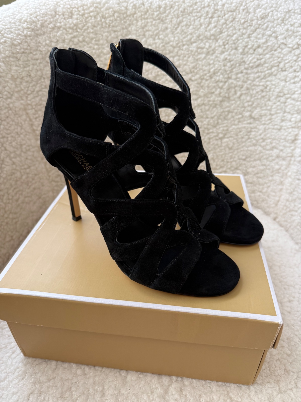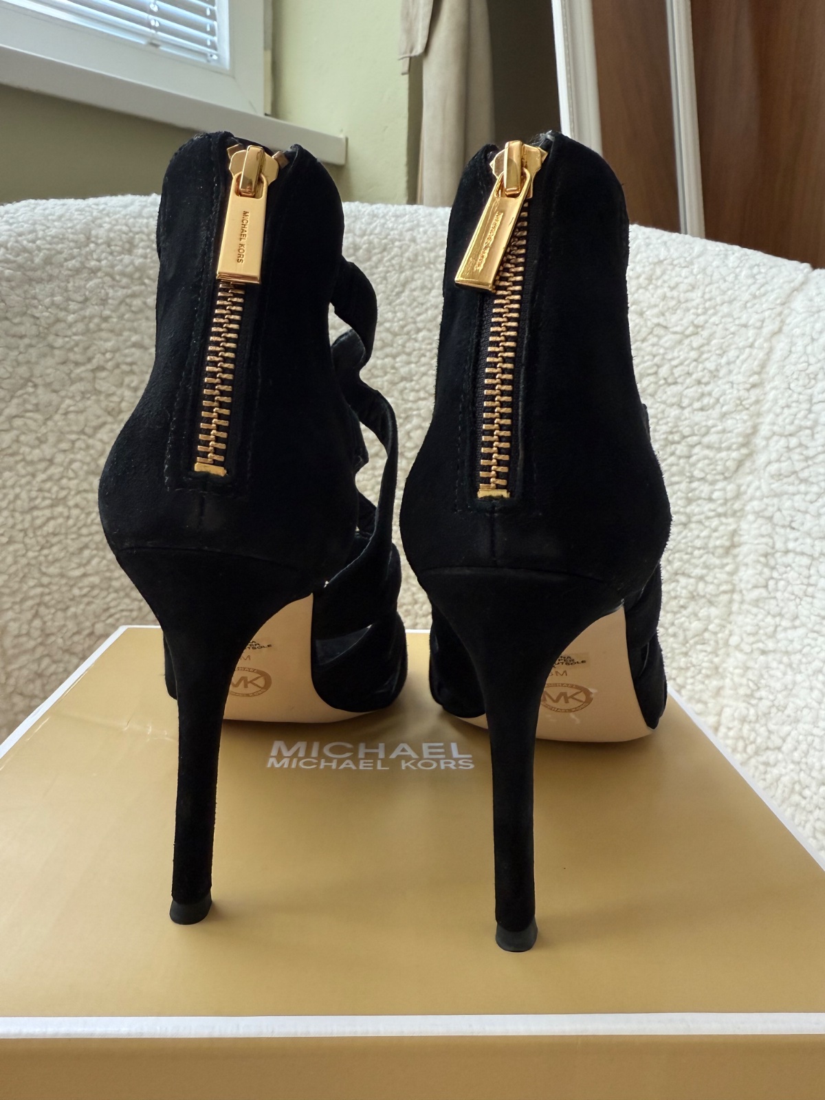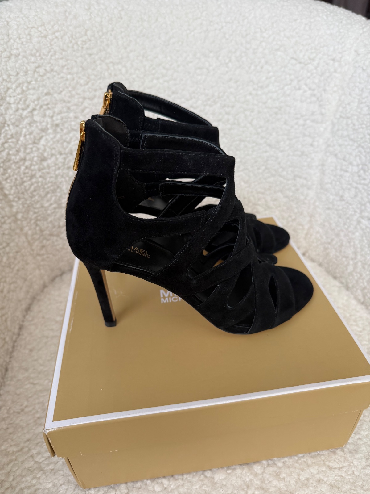 Krásne Michael Kors lodičky Arianna, nové, zabalené, originál s dokladom o kúpe, zárukou a MK krabičkou a papierovou taštičkou. Výška podpätku 10,7 cm, farba: strieborná, veľkostí viacero, materiál...