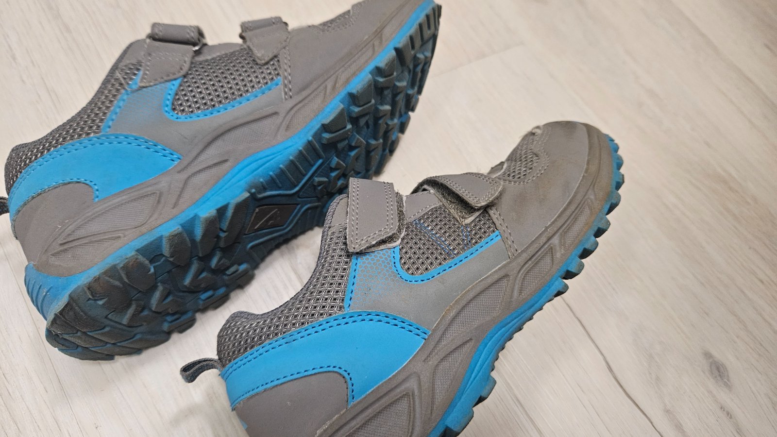 Tenisky po našom malom,maju len jedinu chybičku na jednej su ošuchane-viď foto.inak uz poskodenie nemaju