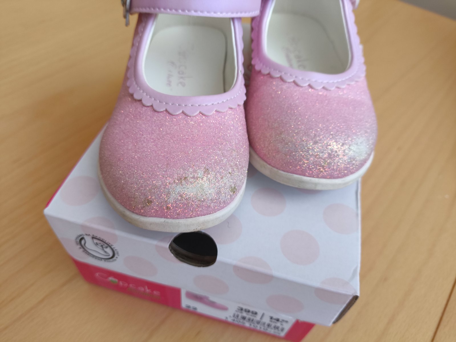 Topánočky majú suchnute špičky, tým,že sú trblietavé, to pri nosení nie je moc vidieť
