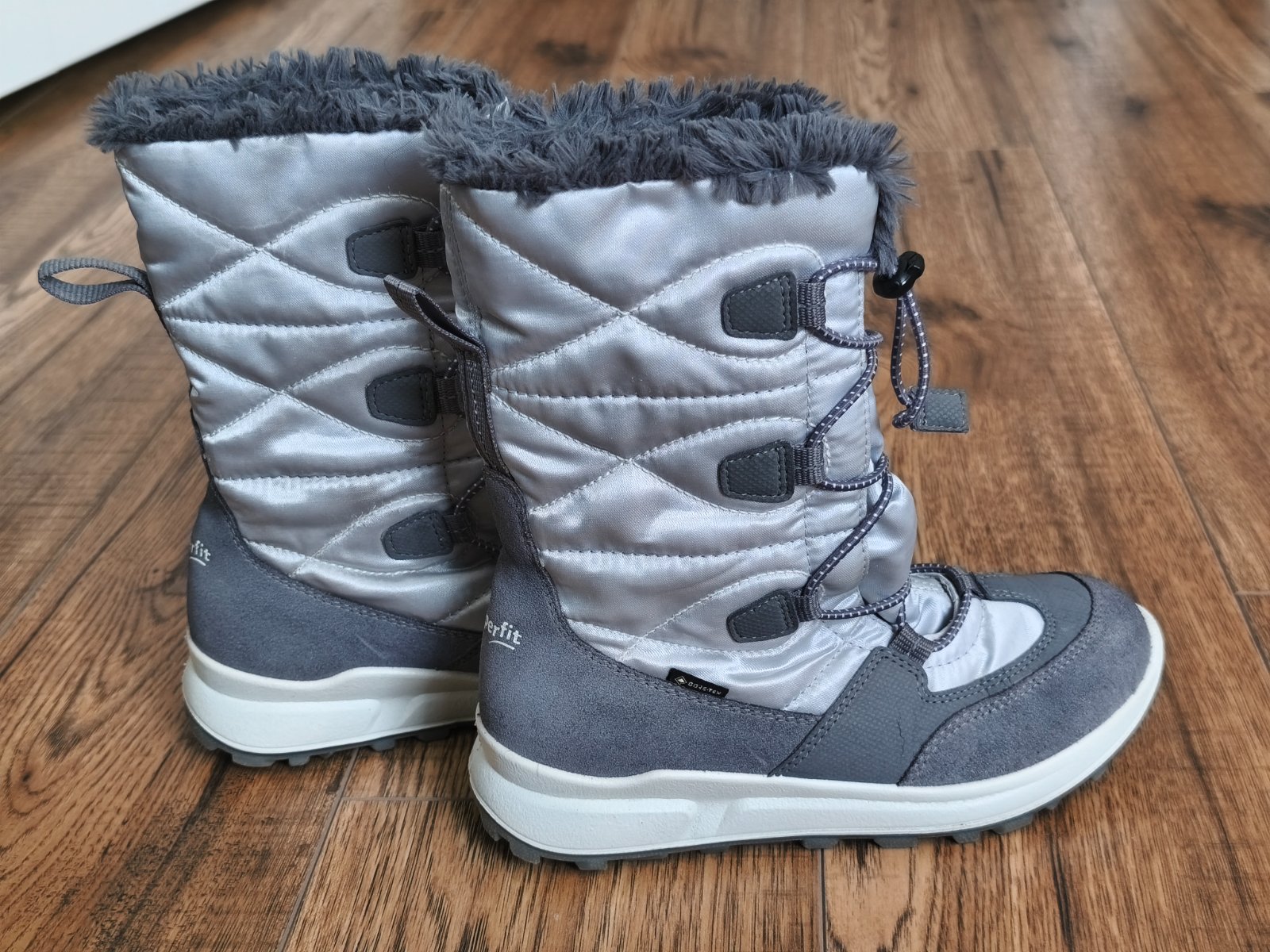 Zachovale, nepremokave goretexove, noha je v teplucku. Pohodlne obuvanie a vyzuvanie. Na kozusine vidno nosenie