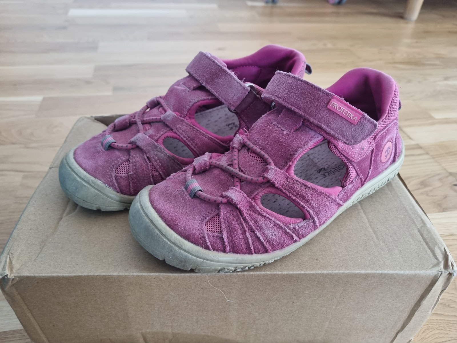 Kvalitne sandalky s vyvysenou podrazkou proti okopaniu. Makksia rada,ohybne a pohodlne. Idealne aj ako prezuvky.