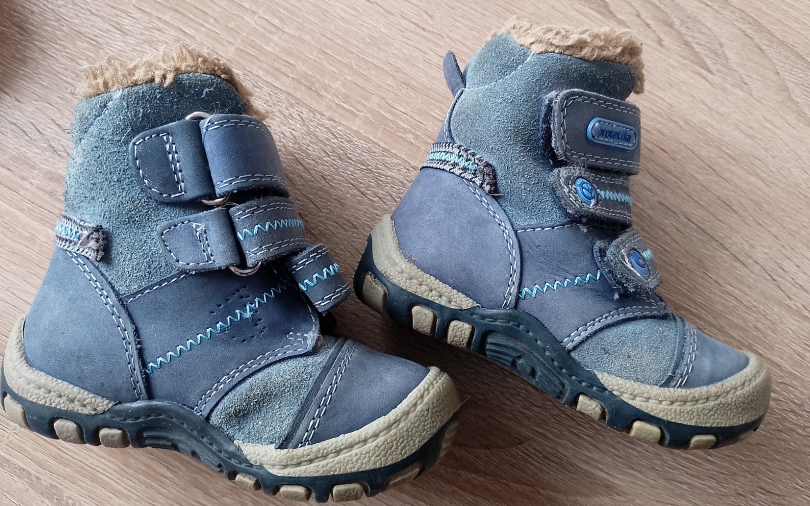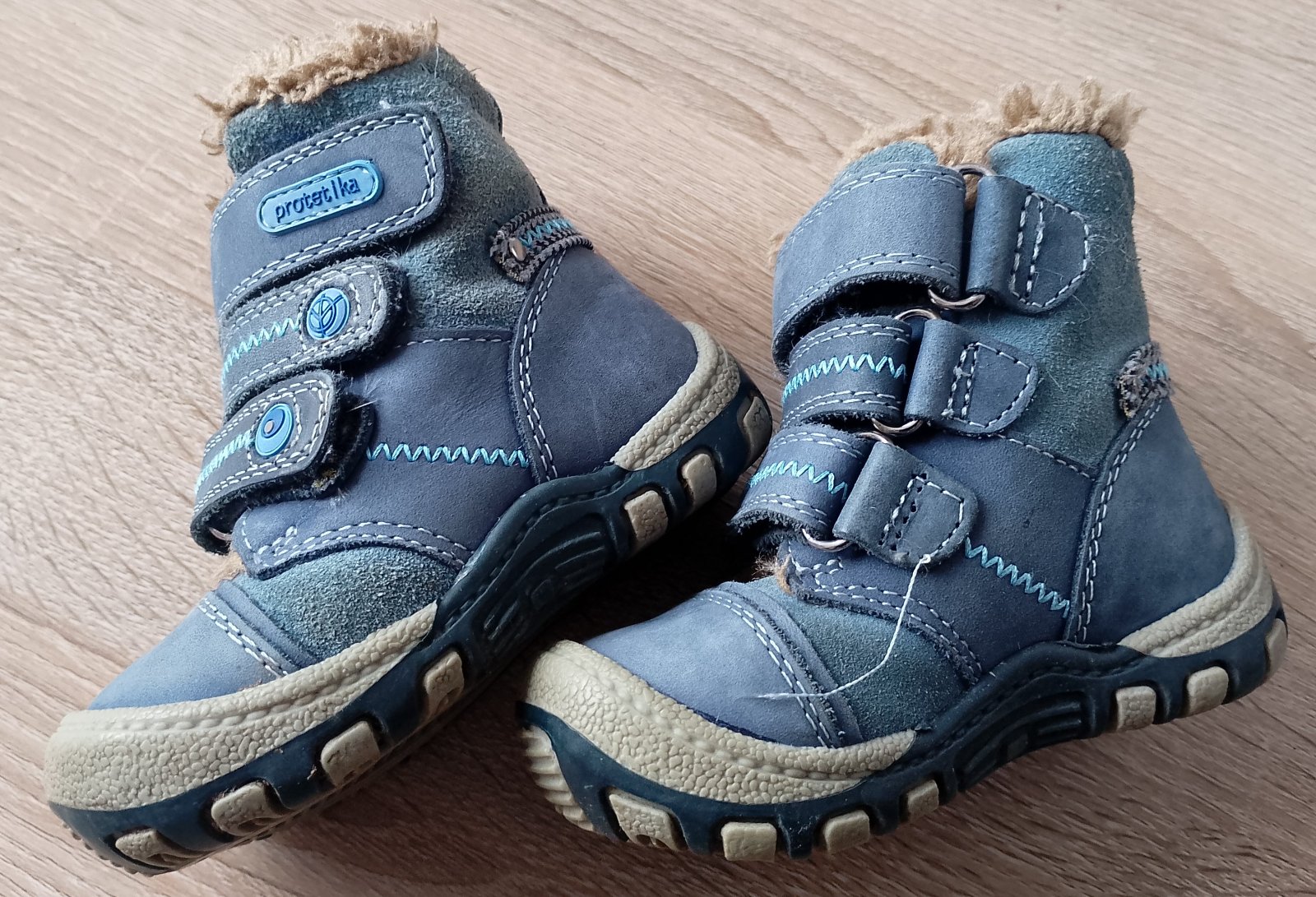 Zachovalé čižmičky, v dobrom nosením stave - akurát na ľavej čižme je odtrhnutý spodný suchý zips. Ostatné dva však fungujú a tak to funkcií neuberá... Vn.d.- 14 cm. Značka Protetika - kvalitné.