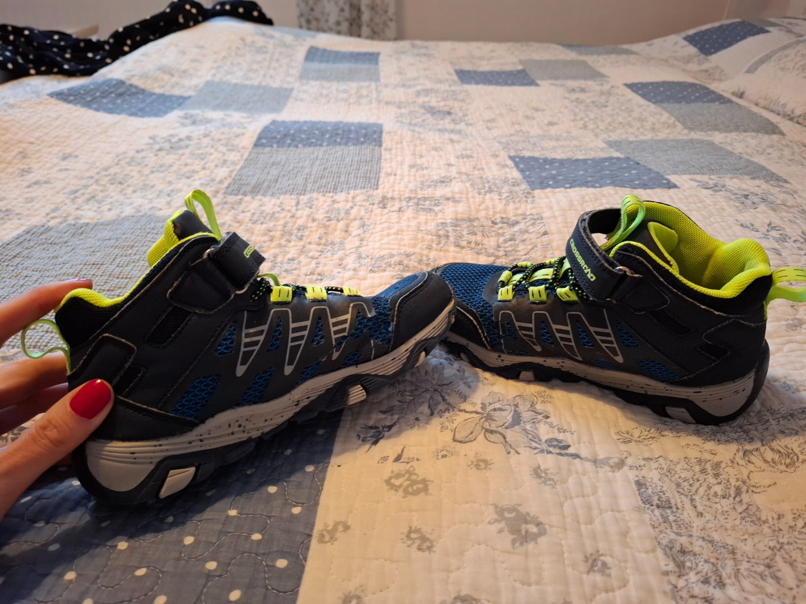 Prechodne topanky, velmi malo nosene, neodhadli sme cislo a skoro boli male. Este v zaruke, zo Sportissima.